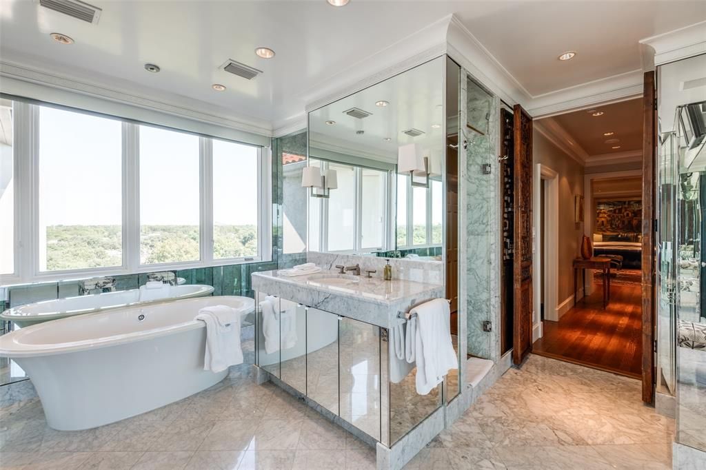 Stunning two story condo located in the Park Plaza building in Highland Park. Experience luxury living in this gorgeous 3 bedroom 3 bath condo. Featuring designer interiors that exude elegance and sophistication, this residence offers sweeping downtown views from all living areas, creating a captivating backdrop for everyday life. Key features include spacious living areas with an open concept layout that maximizes and highlights the exceptional views. Gourmet kitchen is equipped with high end appliances and chic finishes perfect for culinary enthusiasts. Upstairs you will have 3 luxurious bedrooms with ample space and privacy, all with en suite bathrooms. The primary suite is expansive and includes a sitting area, 2 walk in closets and all marble spa like bath. Building amenities include beautiful common areas, pool , security and garage parking. This unit is a must see!