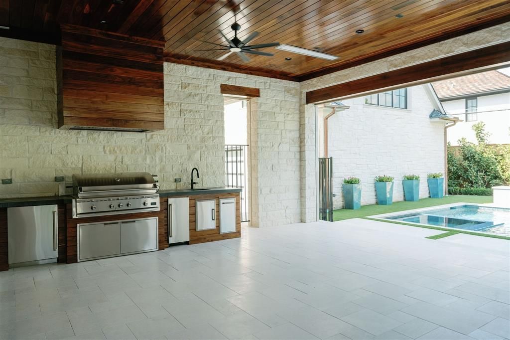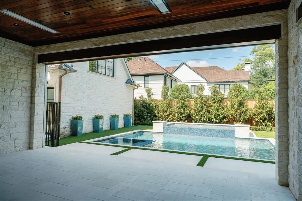 Stunning transitional, meticulously crafted by Colby Craig Homes, seamlessly blends French elegance and modern luxury in Dallas' most prestigious neighborhood. Stroll through iconic parks and hedge-lined streets to award winning Bradfield Elementary, DCC or Highland Park Village for luxury shopping, dining and holiday events. Greeted by a stately stone exterior, slate roof, iron doors, copper gutters, gas lanterns, and towering oak trees. Sophisticated Italian kitchen with Taj Mahal marble, white oak custom cabinetry, statement hood, Wolf-Sub appliances, & wine columns. Primary suite offers a private oasis with his & her bidets, free standing tub, & dream closet. 11ft ceilings down, expansive windows, elevator, marble fireplaces, oversized guest rooms, private office, game room, bar, Lutron system, artistic tiles, and statement fixtures are sure to impress. Garage apartment with 5th bedroom. Large covered patio with remote shades, summer kitchen, fireplace & Hamptons style pool with spa and tanning ledge - A perfect setting for hosting unforgettable gatherings.