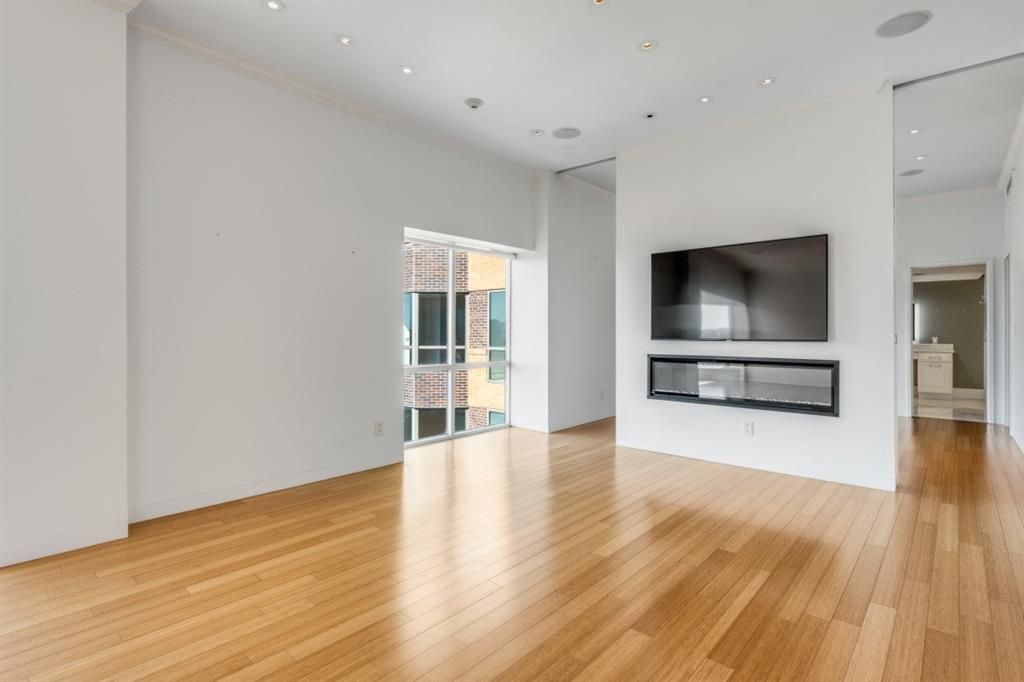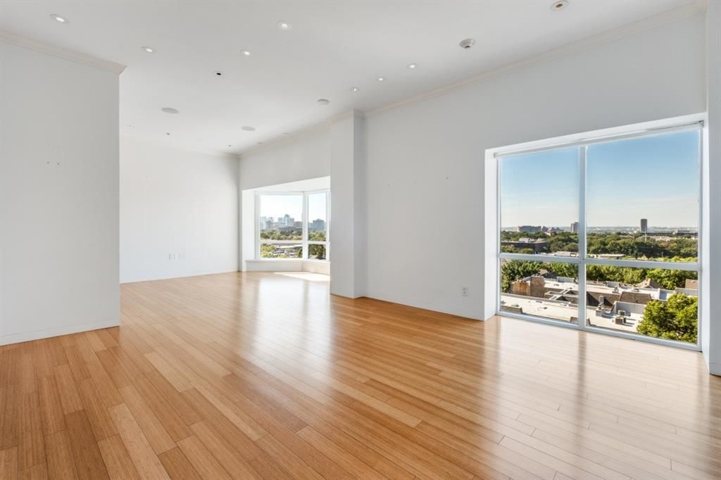 The perfect one bedroom apartment in desirable Crestpark Condominiums, located in Highland Park, HPISD, and with beautiful downtown views! Located on the 9th floor overlooking the pool and patios, this home is light and bright and has all you need! The spacious living room with fireplace, and dining area open to the kitchen, and the bedroom is tucked behind - with an updated bath with separate tub and shower, walk in closet and dual vanities. There is also a half bath for guests. There are very few one bedroom homes in this building, which includes fitness areas, pool, patios, 24 hour concierge and security, valet parking for you and your guests, gated and secured underground parking, storage, and valet service, all in a great Highland Park location walkable to Whole Foods and Nonna!
