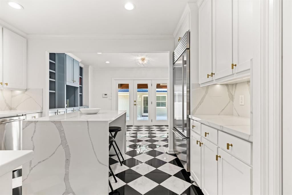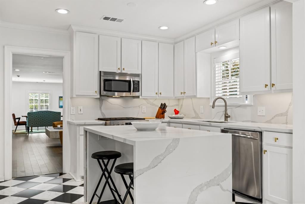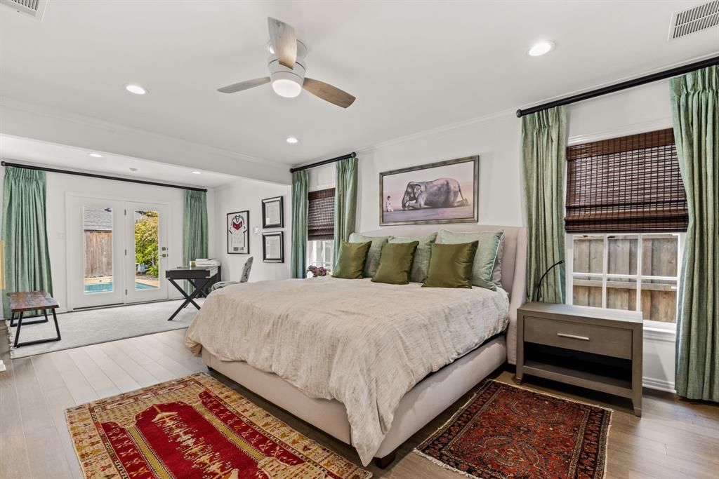 Nestled on a picturesque block in the highly coveted West Highland Park neighborhood, this charming 2-bedroom, 2-bathroom cottage is a perfect blend of classic style and contemporary comfort. Built in 1945, the home has been thoughtfully updated with clean-lined traditional design and high-end features that make it both sophisticated and inviting. Inside, the light-filled living spaces showcase gleaming hardwood floors and plantation shutters, creating a warm and welcoming atmosphere. The updated kitchen, equipped with a Sub-Zero refrigerator, flows effortlessly into the den and master suite, both offering serene views and direct access to the outdoor entertaining area. The spacious master suite is a peaceful retreat with a cozy sitting area, an expansive walk-in closet, and a luxurious white marble bath featuring dual sinks and a separate shower. A detached 300+ sq. ft. bonus room provides incredible flexibility, whether used as a home office, gym, or creative space. Step outside to discover a private outdoor oasis designed for relaxation and entertainment. The inviting patio, complete with a pergola, lounge space, and grill area, overlooks a lush, tranquil backyard that surrounds the sparkling pool and spa. This seamless indoor-outdoor flow makes the space perfect for hosting or unwinding after a long day. Additional highlights include a 2-car garage with an automatic gate and the added benefit of being serviced by Highland Park's top-tier police and fire departments. Combining elegance, comfort, and prime location, this exceptional home offers a rare opportunity to experience luxury living in the heart of Dallas.