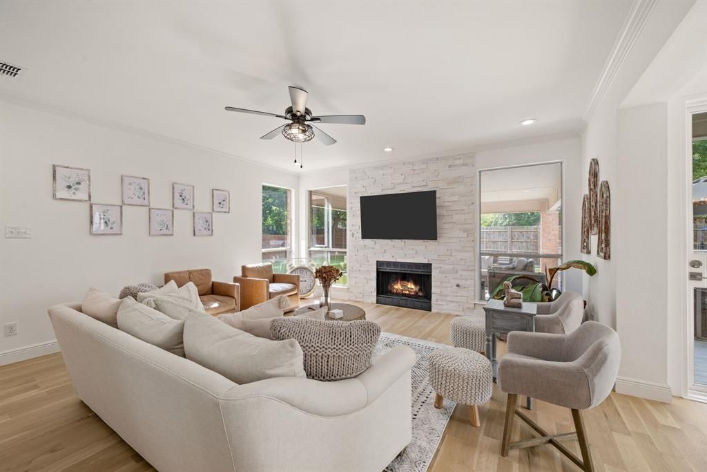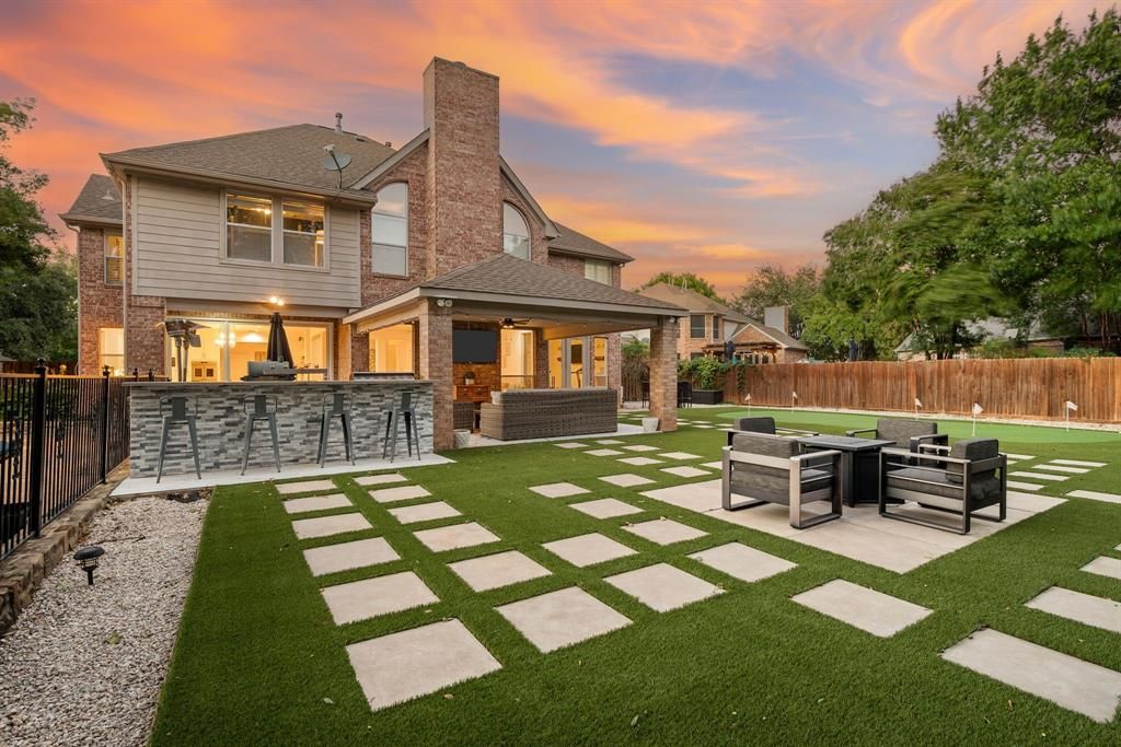Located in the heart of Southlake, this beautifully designed home blends elegant finishes, comfortable living, and a prime location near top-rated Carroll ISD schools and Southlake Town Square. Enjoy the convenience of being just minutes from Carroll Senior High, Carroll High School, and the city's premier shopping, dining, and entertainment. The entry welcomes you with a formal living room featuring a built-in coffee bar, wine cooler, and coffee maker, along with a winding staircase that creates a striking focal point. The spacious main living area centers around a stone fireplace and a wall of windows that fill the home with natural light and showcase views of the backyard. The chef's kitchen is thoughtfully equipped with a Monogram 6-burner gas cooktop and vent hood, Monogram double oven, pot filler, cabinet-front refrigerator, and a large island ideal for prep or entertaining. The adjoining breakfast room offers scenic views of the backyard. A private study provides a quiet space for work, while a bonus room"”currently used as a workout room"”offers flexible living options with direct access to the outdoors. The second story primary suite features a spa-inspired bath with a garden tub, glass-enclosed shower, dual vanities, and a spacious walk-in closet. Three additional second story bedrooms and a game room provide space for everyone to relax or play. Outdoors, enjoy a low-maintenance turf lawn, putting green, and a covered patio with built-in grill and dining area, perfect for entertaining. The pool and spa combination create a private retreat for year-round enjoyment. A three-car garage completes this exceptional Southlake residence. Experience refined living and a highly sought-after location"”luxury, lifestyle, and convenience all at 608 Stratford Drive.
