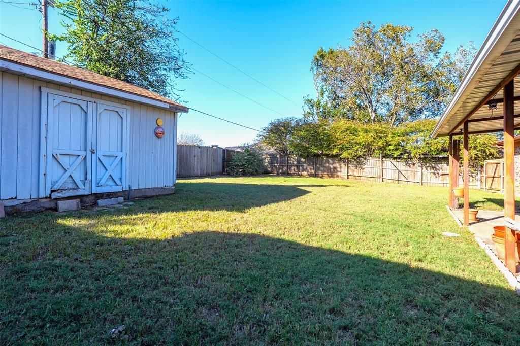 Welcome to 1244 Willowwood! an inviting 3-bedroom, 2-bath home nestled in a beautiful, tree-lined neighborhood on a spacious lot. This well-maintained home features a functional layout perfect for everyday living. Enjoy relaxing on the covered back porch overlooking the nicely sized backyard - ideal for gatherings, gardening, or play. Even a nice sized shed with electricity for storage! A true gem in a charming, established community! Easy commutes to work and play and very convenient to the Chisholm Trail Parkway!