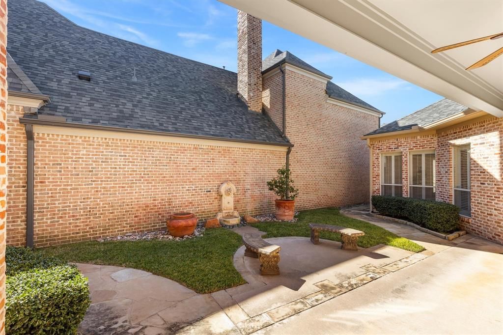 Located in the gated and guarded community of Cambridge Place at Preston Trails near Preston and Campbell Roads, this elegant Hawkins-Welwood home offers the ideal lock-and-leave lifestyle. With 4,110 sq. ft. of thoughtfully designed living space, it includes 3 bedrooms"”each with an ensuite bath"”plus a convenient powder room for guests. The main level features an inviting primary suite with a generous sitting area, a large ensuite with separate tub and shower, and two large walk-in closets. The open-concept kitchen includes a spacious walk-in pantry and flows seamlessly into the living room, where a vaulted ceiling and abundant natural light create a warm and welcoming atmosphere. A formal dining room is perfect for entertaining, while a richly paneled home office with custom built-ins provides an ideal space for remote work, a library, or a game room. Enjoy the outdoors in the charming courtyard, perfect for morning coffee, outdoor dining, or just relaxing. The second floor offers two additional ensuite bedrooms as well as a huge walk-in attic, providing exceptional storage options and easy access. Impeccably maintained, this zero-lot-line home blends timeless craftsmanship and comfort"”all within one of North Dallas's most desirable gated neighborhoods.