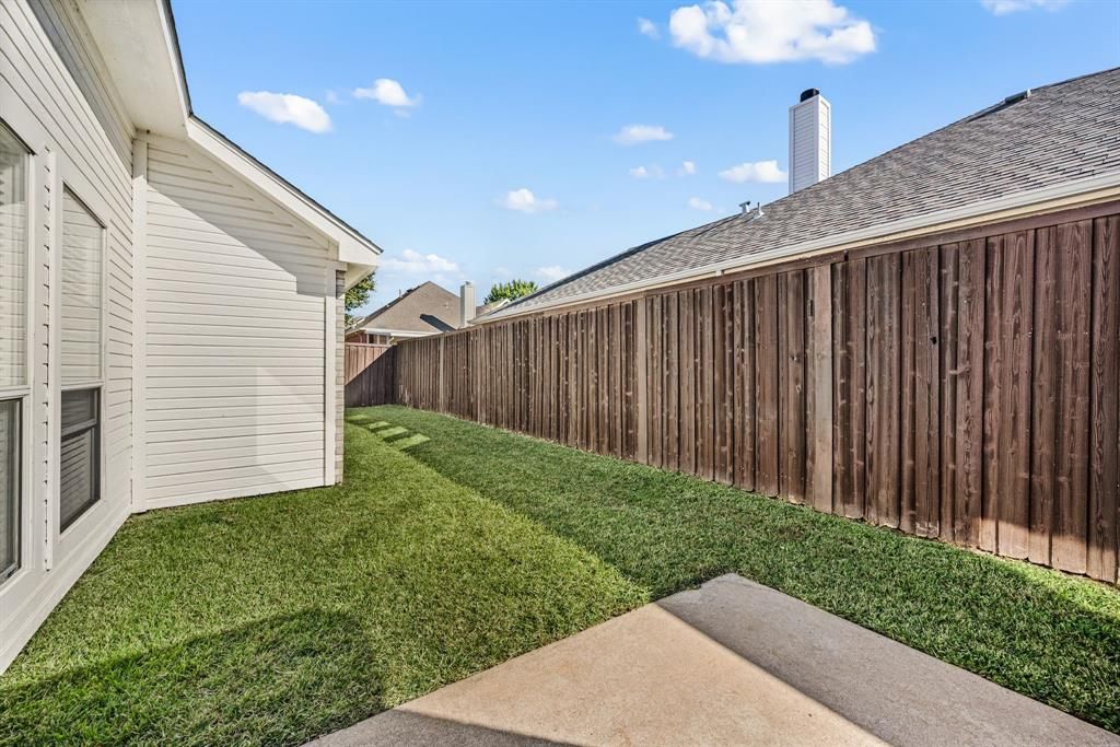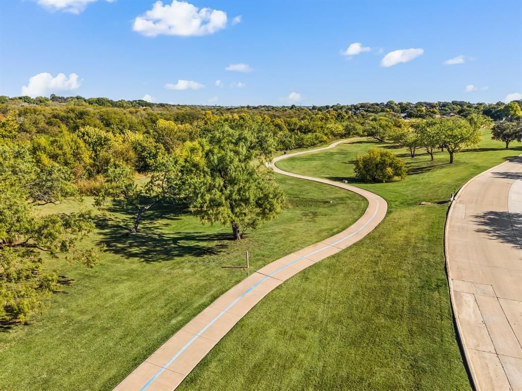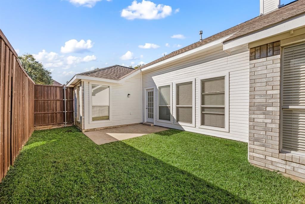 Welcome home! This bright and beautifully maintained 3-bedroom, 2-bath residence is perfectly positioned near a peaceful greenbelt, park, and scenic jogging trail and minutes away from downtown Carrollton and several highly esteemed dining and a variety of shopping options. Step inside to discover tall ceilings and abundant natural light that create an open, airy atmosphere. The spacious living room lined with windows allow light to seep into the space and seamlessly connects to the breakfast area, while a formal dining room just off the entry adds a touch of elegance for gatherings. Durable hardwood flooring flows through most of the home, offering both warmth and easy maintenance. The private primary suite serves as a relaxing retreat, complete with a soaking tub and separate shower. Outside, enjoy a quiet patio surrounded by mature landscaping and an 8-foot privacy fence, perfect for morning coffee or unwinding in the evening. Additional highlights include a refrigerator, washer and dryer that will convey, 2 dining areas and multiple walk in closets. Conveniently located just minutes from George Bush Tollway (190) and I-35, this home blends peaceful living with effortless city access. You don't want to miss your chance to call it your own!