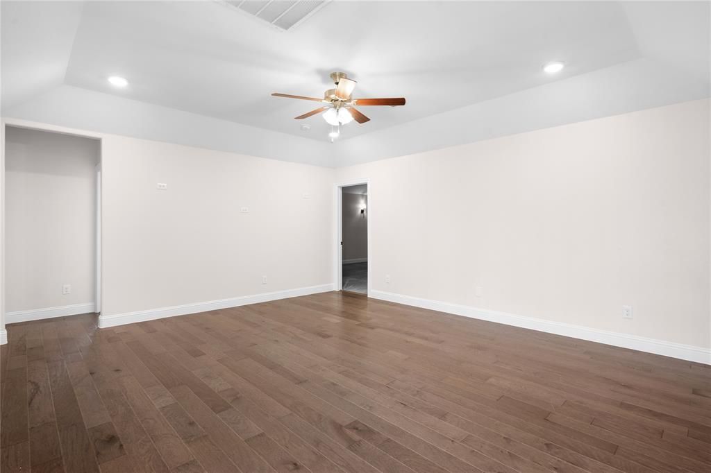 Welcome to this stunning 4-bedroom, 4-bath, 3-car garage home in the desirable Union Park subdivision, offering over 4,000 sq. ft. of luxurious living space and an impressive open two-story design. Step inside to soaring ceilings, elegant wood treatments, and beautiful architectural details that create a sense of timeless sophistication. The gourmet eat-in kitchen is a chef's dream, featuring double ovens, an oversized center island, extensive cabinetry, and abundant counter space"”perfect for both daily living and entertaining. The open-concept layout flows seamlessly to the dining area and the inviting living room, complete with a cozy fireplace and floor-to-ceiling windows that bathe the space in natural light while showcasing serene views of the manicured backyard which includes a grill, wine fridge and mini fridge. The first-floor primary suite offers a private retreat with a spa-inspired ensuite featuring double vanities, a garden tub, separate shower, and a walk-in closet. A dedicated study adds convenience and flexibility for remote work or quiet reading. Upstairs, you'll find three spacious secondary bedrooms, two full baths, an expansive game room, and a generous media room with a loft area"”ideal for gatherings, movie nights, or relaxation. Combining elegance, functionality, and modern design, this Union Park gem delivers the perfect blend of comfort and style.
