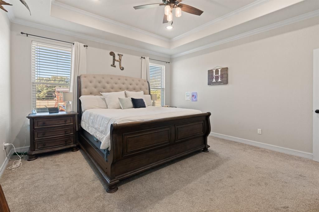 Custom built home on small acreage offers open floor plan with soaring ceilings starting at the entry and continuing into the open living space, kitchen and dining areas. Kitchen has extra large island, pantry and tons of storage and counter space. Primary bedroom with ensuite spa like bath, soaking tub, walk in shower, separate vanities, walk in closet that opens to utility and mud room with drop zone. The ancillary bedrooms on a separate hall included a half bath as well as a hall bath with long counter and tub shower combo. The back porch is big enough for entertaining and the fenced yard creates that extra sense of safety. 30x24 shop finishes out the property with concrete, 2 roll up doors as well as roll up door on the back of the building for pull through ease. Buyer and Buyer's agent to verify room sizes and square footage.