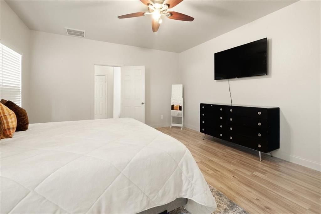 High ceilings, beautiful floors and neutral colors set the stage for this-turn key ready 4-bedroom, 2.5-bath retreat, perfectly situated on a generous 0.37-acre lot. With 2,212 square feet of thoughtfully designed living space, this home combines a knock out floorplan that is inviting and comfortable. As you enter, you're greeted by an open and airy layout filled with natural light, highlighting the fresh interior paint and stunning new LVP wood flooring that flows seamlessly throughout the main living areas. The dining is open to the kitchen offering plenty of prep space and sleek black appliances. Split living-Primary bedroom on the first floor with a beautiful bathroom, separate shower tub, dual sinks and a walk in closet. Convenient half bath downstairs for guests. Upstairs offers 3 spacious secondary bedrooms, & a large game room provides the perfect space for movie nights, celebrations, or simply relaxing and unwinding after a long day. Step outside to your private backyard Texas-sized. The covered patio is spacious enough to host dining opportunities or just a great space to hang out. Fenced in a private with plenty of space for games and room to run. Do not miss th Virtual Tour.