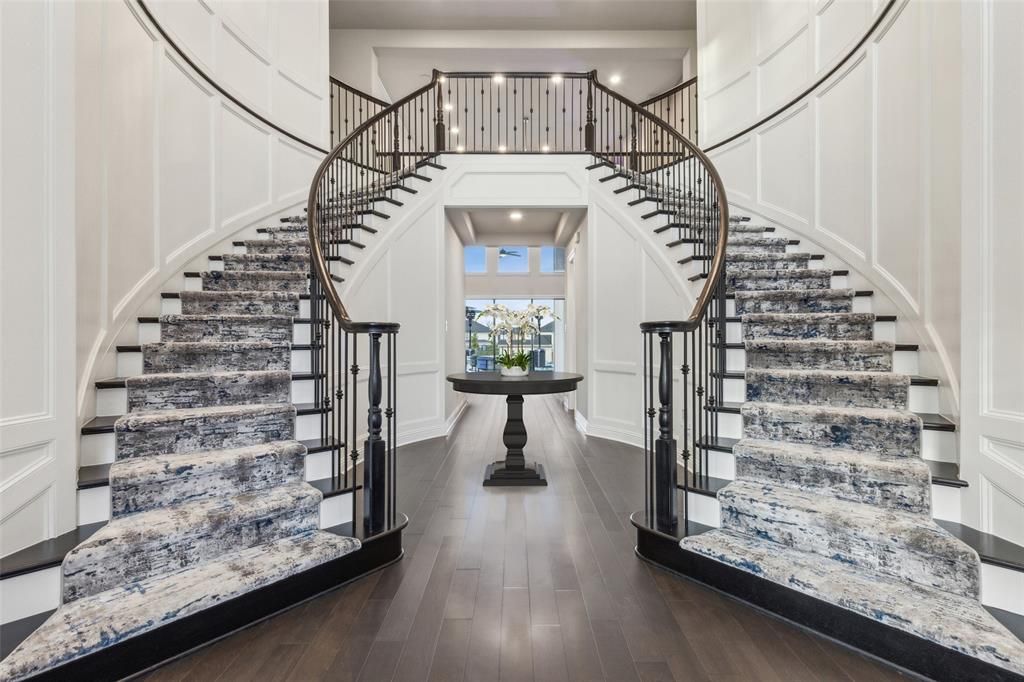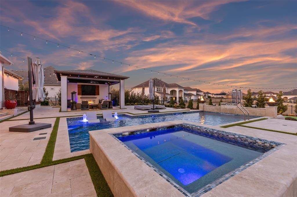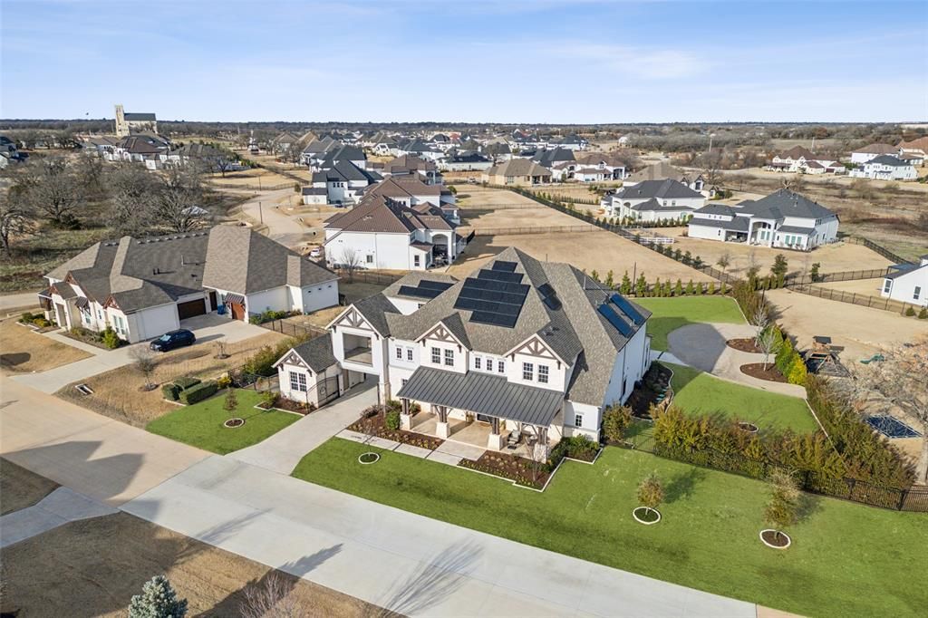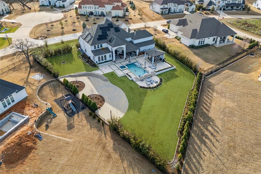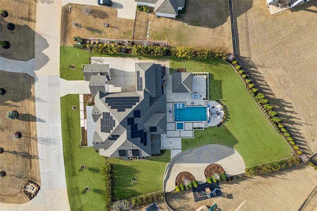 Perfectly situated on an oversized lot adorned w-lush fruit & nut trees & a sparkling pool. The grand entryway captivates w-its dramatic double staircase & soaring 20-foot ceilings, setting the stage for an unforgettable first impression. Designed for effortless entertaining, this home features an open-concept layout w-expansive glass multi-slide doors that seamlessly extend the living space to an oversized covered back porch w-a cabana & dog run. Custom oversized backyard entertainer's paradise includes a separate extended paver patio"”ideal for large gatherings, birthday parties, dance floors & barbecues. This fully customized smart home is powered by Control4, offering automatic lighting, automatic blinds, and integrated audiovisual & media systems, all easily controlled from your smart device. Sound absorption panels throughout the home enhance acoustics for a superior living experience. Gourmet kitchen boasts top-of-the-line stainless steel appliances, a Sub-Zero refrigerator, and ample space for culinary creations. The luxurious primary suite offers a spa-like en-suite, while a private guest room is conveniently located on the main floor. Upstairs, three spacious bedrooms are complemented by a built-in desk area perfect for a kids' study space, a large game room"”complete with a pool table and dartboard & a dedicated media room where you can enjoy family movie nights at home. The upgraded roof is designed for durability & energy efficiency, complemented by Tesla solar panels & three Powerwall batteries to ensure sustainable living. A water softener & whole-home water filtration system provide the highest quality water for your household. Garage is a standout, featuring Tesla chargers, epoxy floors, eco-friendly water systems, plus custom shelving for optimal organization. This exceptional home combines elegance, functionality & resort-style living, offering the perfect balance of luxury & convenience.