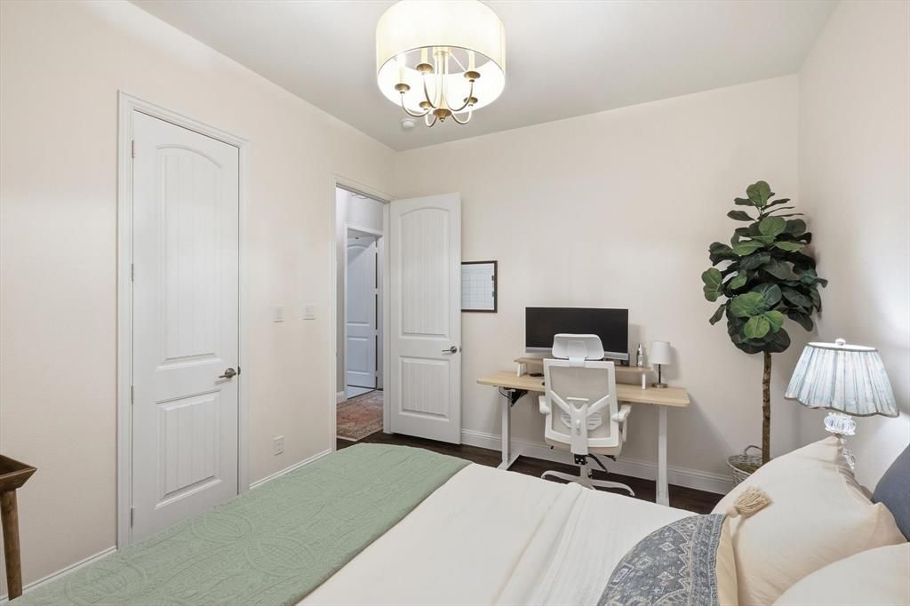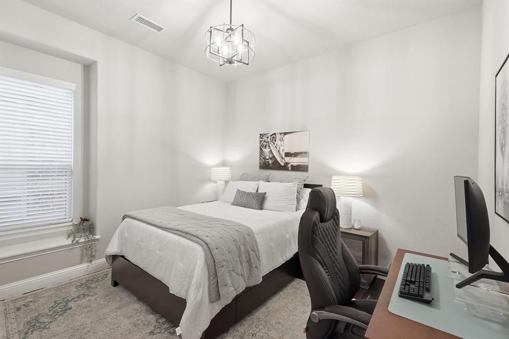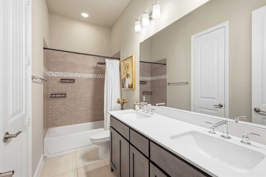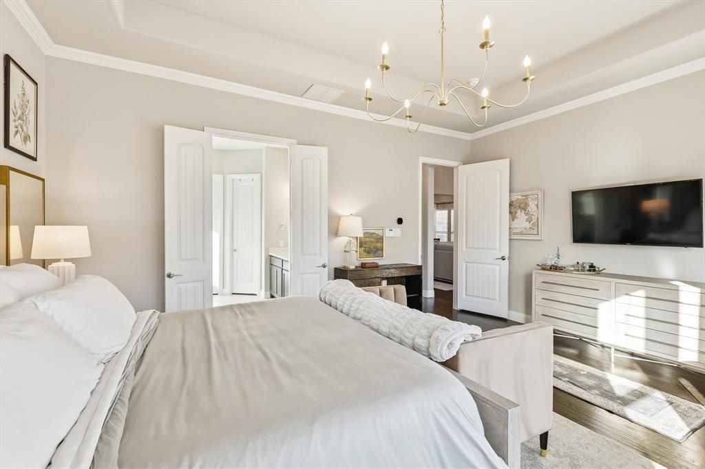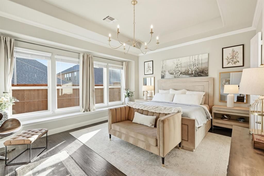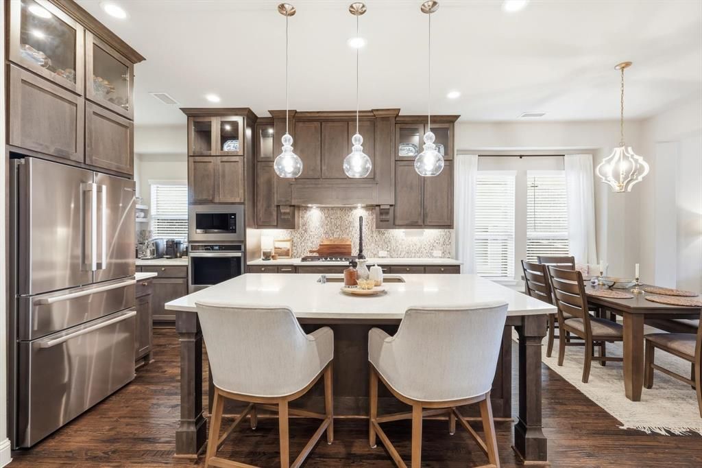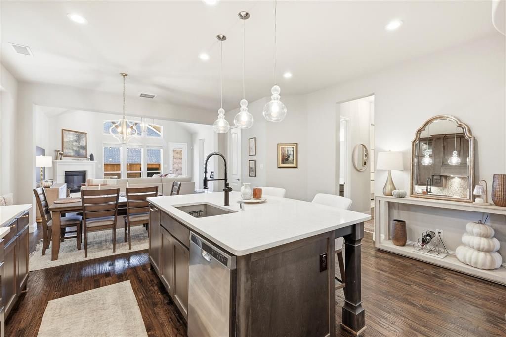 Beautiful Single-Story Home in Prime Lantana Location! Discerning buyers will love this stylish, 2019-built home located in a quiet cul-de-sac in the front section of Lantana. The elevated lot offers privacy in the backyard and quick access to major roads, shopping, dining, and DFW Airport (25 minutes). Inside, upgraded red oak hardwoods, custom cabinetry, specialty tile, and soaring ceilings create a warm, open feel. Architectural details"”wood beams, a rotunda ceiling, and butler's pantry"”add character and charm, while curated light fixtures throughout elevate the look. The flexible front room can serve as a study, fourth bedroom, or chic "Speakeasy" lounge with its electric fireplace and moody vibe. The kitchen impresses with soft-close cabinets, pull-out spice drawers, glass-front uppers, and a custom vent hood. A butler's pantry doubles as a coffee bar, and the oversized walk-in pantry is a dream! Light-filled living and dining areas enjoy south-facing windows, a vaulted ceiling with wood beam, and a cozy gas fireplace. The split bedroom layout ensures privacy for the spacious primary suite, featuring a stunning bath and large walk-in closet. A built-in mudroom off the garage entrance to the laundry area adds everyday convenience. Outdoors, the covered patio with vaulted ceiling and party lights sets the scene for easy entertaining, and the manageable yard keeps maintenance simple. Enjoy Lantana's resort-style amenities"”two fitness centers, five pools, tennis and pickleball courts, trails, and year-round community events. Front yard maintenance is included in your HOA fee. The newest elementary school is just two blocks away, and golf memberships are available at the Lantana Golf Club.
