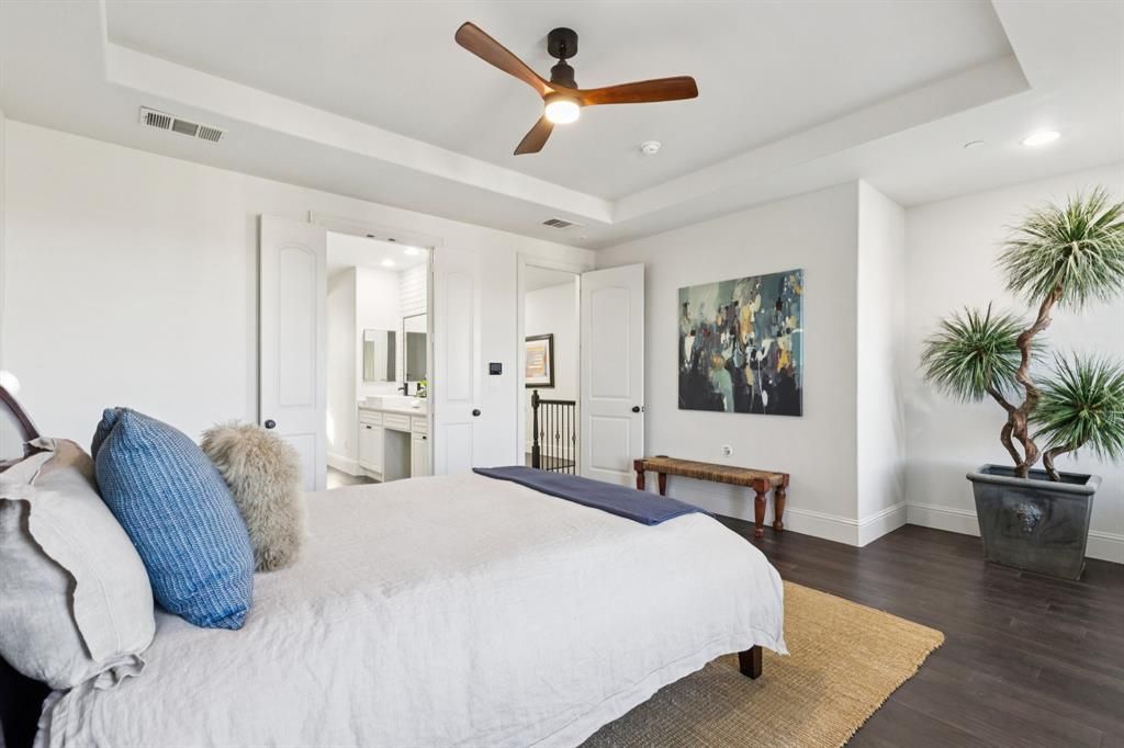 MORNING COFFEE WITH A LAKE VIEW? You found it "” this modern three-story home with beautiful hardwood floors throughout faces Las Colinas' private Lago de Claire. Entertain friends and family on the open-concept second floor, offering a spacious kitchen with like-new, high-end appliances, a breakfast bar, high ceilings, custom cabinets, wooden shutters, designer lighting, and a Samsung Frame TV. More than $44,000 in upgrades have gone in since 2021. The primary suite features a sitting area, a lake-view Juliet balcony, a large walk-in closet with custom storage, and an updated spa-like bath with marble countertops. The first-floor bedroom also has an en suite bath. HOA fees cover water, gas, exterior insurance, and more. Acres of parks, trails, canals, lakes, tree-lined streets, and plazas surround this peaceful community. This low-maintenance condo is a block from La Villita Elementary and offers quick access to both airports, major companies, DART, and highways 114, 161, and 635. Downtown Las Colinas, Cypress Waters, shopping, dining, Toyota Music Factory, and the 17-mile Campion Trail are just minutes away. Best yet? An HEB opens three miles down the road in 2026! The taxes shown are much lower because they do not reflect a homestead exemption or a generous abatement from the Dallas County Utility & Reclamation District. It's move-in ready! Don't miss out.