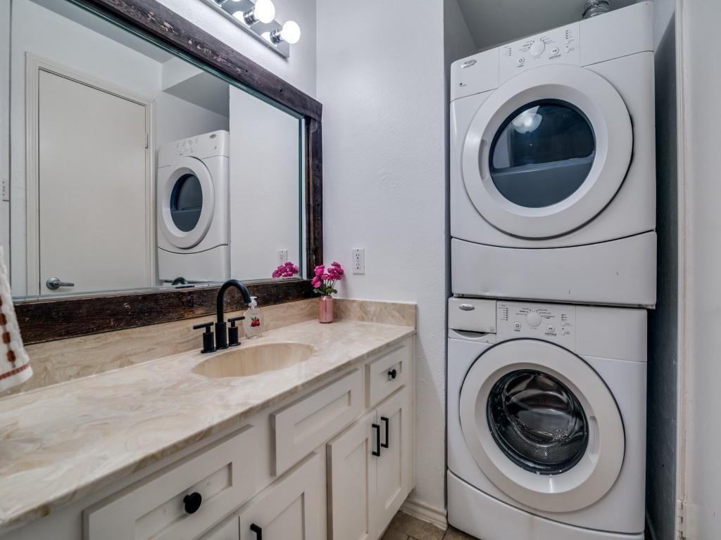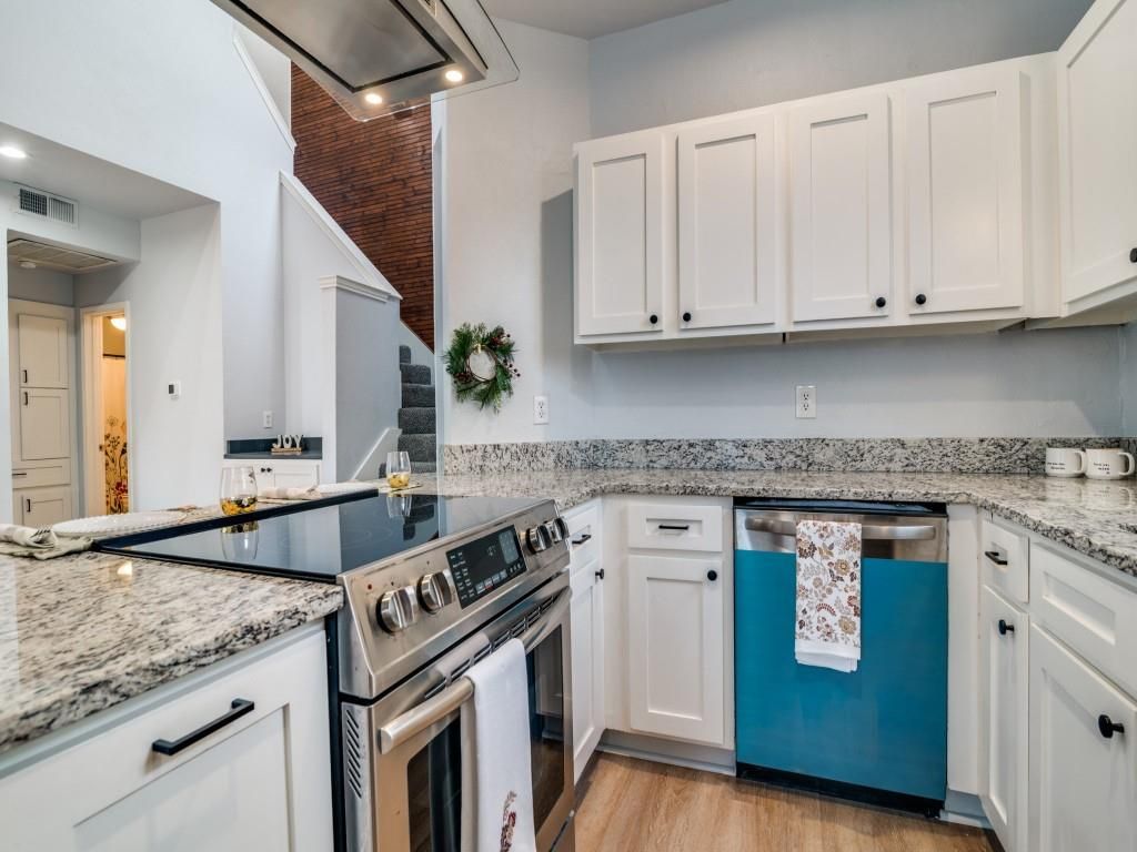 LAKESIDE LIVING with a POOL VIEW! Enjoy the best of both worlds in this stylishly updated 2-bedroom, 2-bath condo just steps from Lake Ray Hubbard and minutes from Downtown Dallas. Loaded with amazing updates, this move-in-ready home features new wood floors, brand-new carpet, granite kitchen counters, a new range and vent hood, dishwasher, HVAC, updated electric panel, and fresh paint throughout. The spacious living area offers a cozy fireplace, a private balcony with storage, and a seamless flow into the dining area and gorgeous kitchen - perfect for relaxing or entertaining friends. The first-floor bedroom, full bath, and bar add convenience and flexibility for guests or work-from-home space. Upstairs, the primary suite provides privacy and comfort with dual sinks, a garden tub, and a separate shower. Enjoy your own covered parking spot, views of the community pool, and easy access to I-30, PGBT - I-90, Rockwall Harbor, shopping, and dining. Garland ISD. Kitchen refrigerator, washer, and dryer all convey. Start your homeowner journey where lake life and city life meet!