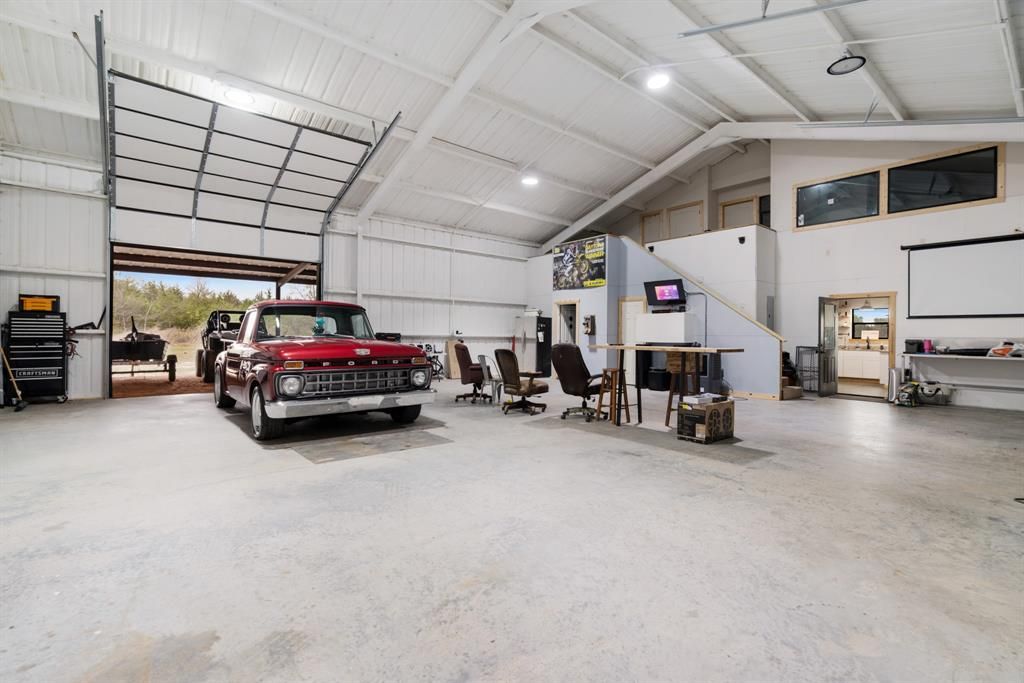 ~A True Country Retreat!~ Nestled at the end of a long private driveway, this stunning 4 year old Barndominium sits on 44± acres of open pastureland with scattered trees and a tranquil pond that draws wildlife daily. With 3 sides fenced (back has posts no wire) and almost ready for livestock or horses, this ranchette is perfect for outdoor enthusiasts seeking peace, privacy, and plenty of space. Inside, the home boasts a thoughtfully expanded layout with a newly added second story featuring two spacious bedrooms, a full bath, and a cozy loft. The charming kitchen is complete with granite countertops, a breakfast island, and stainless-steel appliances. The downstairs primary suite offers two walk-in closets for ample storage. Connected to the living quarters is a massive 40x45 foam-insulated shop with three 12-ft commercial doors and dual access"”ideal for pulling through boats or RVs. The shop also includes a half bath and a storage closet under the staircase. Out back, a full-length awning provides additional covered parking for ATVs, tractors, or campers, and includes a 50-amp plug for convenience. There is also a basketball court or use the additional slab to create a new outbuilding. Whether you're watching breathtaking sunsets or enjoying the serenity of country life, this property offers the perfect blend of functionality and natural beauty.