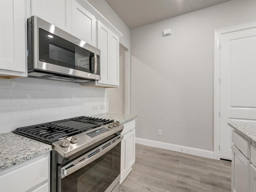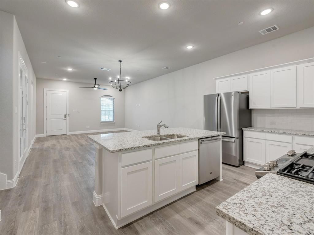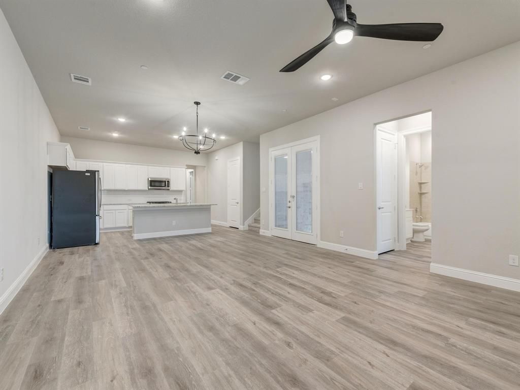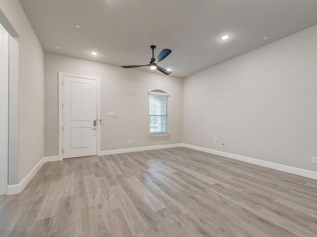 This unique 4-bedroom, 3-bathroom townhome END UNIT offers a bright, open-concept design with modern finishes throughout. Enjoy the convenience of TWO BEDROOMS and two full bathrooms ON THE MAIN LEVEL, including a spacious primary suite featuring dual vanities and a large walk-in closet. Upstairs, you'll find two guest bedrooms, a full bathroom, and a generous loft area"”perfect for a second living space, home office, or playroom. The kitchen is equipped with stainless steel appliances, a gas cooktop, refrigerator, and a walk-in pantry. Energy-efficient windows, ceiling fans with remotes in every bedroom, fire suppression, and surge protection add comfort and peace of mind. The home also includes a downstairs laundry room, a large covered porch, and a rear-entry two-car garage. The HOA maintains the front and side backyard, landscaping including irrigation system and covers part of the home insurance, including the roof. Fantastic location! Easy access to nearby walking and biking trails, 183 Tollway, and I-35"”offering quick commutes to Fort Worth, Alliance, DFW Airport, and Dallas within 15-30 minutes. Just 0.4 miles from Iron Horse Train Station, with trains running every 30 minutes to downtown Fort Worth, Grapevine, and DFW Airport.