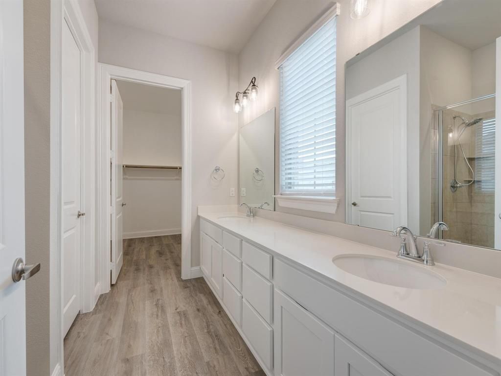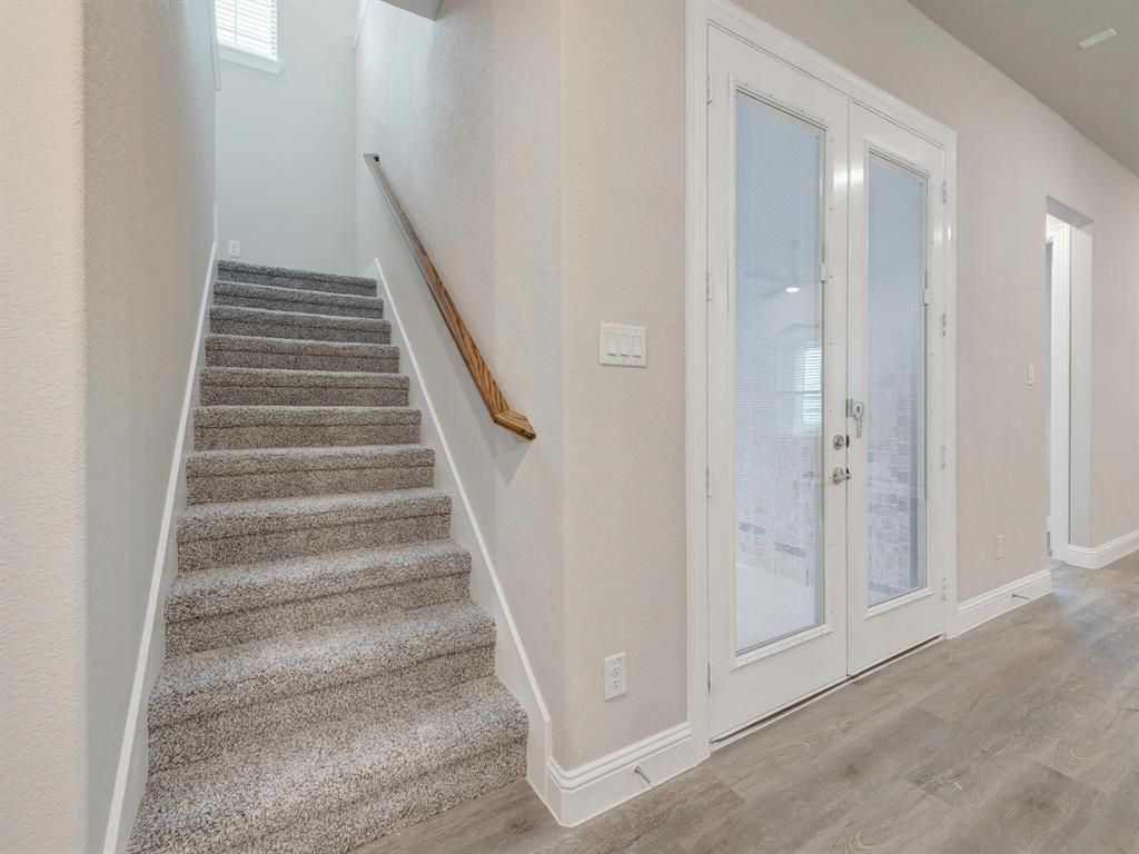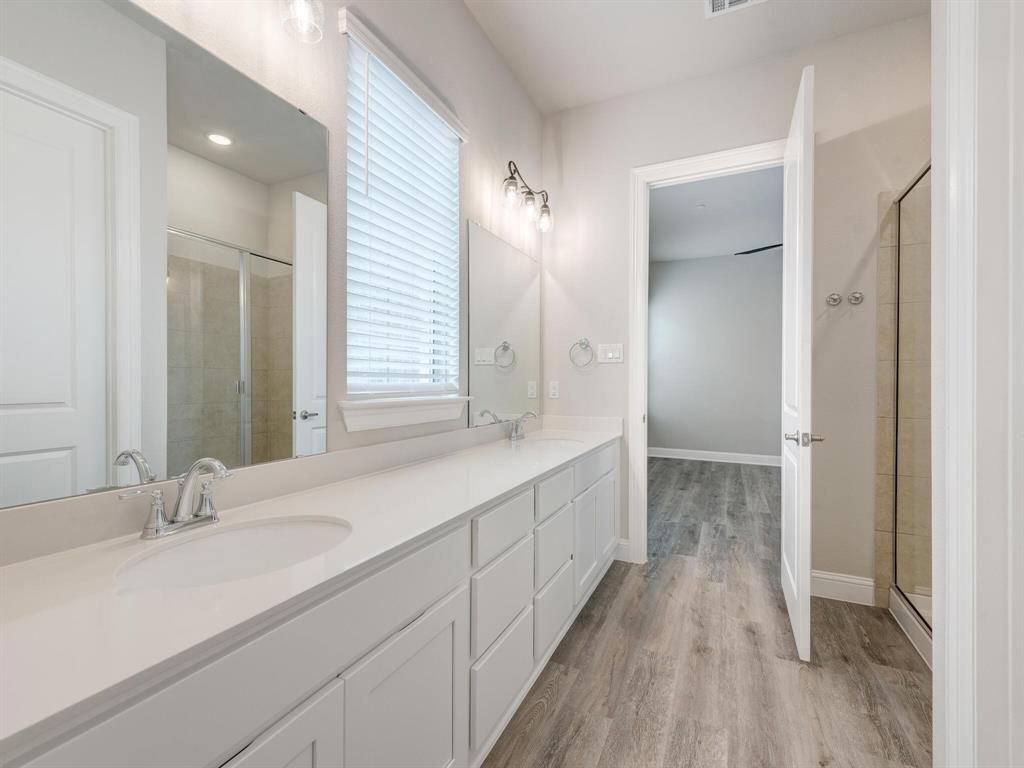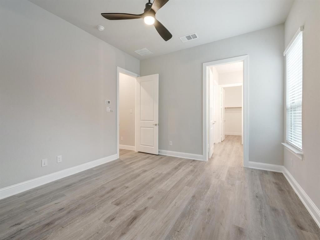 This unique 4-bedroom, 3-bathroom townhome END UNIT offers a bright, open-concept design with modern finishes throughout. Enjoy the convenience of TWO BEDROOMS and two full bathrooms ON THE MAIN LEVEL, including a spacious primary suite featuring dual vanities and a large walk-in closet. Upstairs, you'll find two guest bedrooms, a full bathroom, and a generous loft area"”perfect for a second living space, home office, or playroom. The kitchen is equipped with stainless steel appliances, a gas cooktop, refrigerator, and a walk-in pantry. Energy-efficient windows, ceiling fans with remotes in every bedroom, fire suppression, and surge protection add comfort and peace of mind. The home also includes a downstairs laundry room, a large covered porch, and a rear-entry two-car garage. The HOA maintains the front and side backyard, landscaping including irrigation system and covers part of the home insurance, including the roof. Fantastic location! Easy access to nearby walking and biking trails, 183 Tollway, and I-35"”offering quick commutes to Fort Worth, Alliance, DFW Airport, and Dallas within 15-30 minutes. Just 0.4 miles from Iron Horse Train Station, with trains running every 30 minutes to downtown Fort Worth, Grapevine, and DFW Airport.