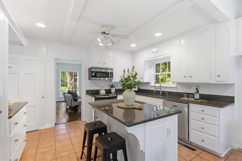 Charming and full of character, this picture-perfect two-story home nestled among stunning mature trees offers both beauty and shade in a storybook setting and is sure to impress. The main house features an expansive living room with a cozy fireplace, beautiful hardwood floors and built ins for you to add your own personal touch and design, along with a dedicated office (or second living) that's perfect for working from home or as a quiet study. The kitchen shines with granite countertops, abundant cabinetry, two pantries, an island, and a wall of windows overlooking the beautiful landscaped backyard from your eat in kitchen. Upstairs, you'll find all bedrooms conveniently located with a split floorplan, including a generous primary suite with room for a comfortable sitting area. Fresh paint throughout the entire interior of the home, kitchen and cabinets, plus updated window shutters and exterior paint give the home a crisp, modern feel. Both bathtubs have been professionally resurfaced, adding to the move-in-ready appeal and so much more!! Step outside and enjoy a lovely cozy backyard space as well access to the guest back house, complete with its own full bath, fireplace, and small full kitchen. Ideal as a guest retreat, or possibly a private office, game room, playroom, or creative hideaway, the possibilities are endless! This home combines warmth, function, and timeless charm beneath a canopy of mature trees, a true joy to show and ready to welcome its next owner!
