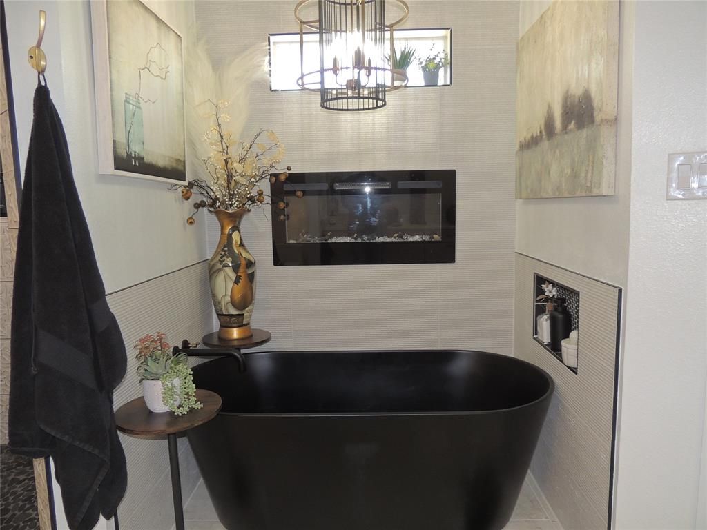 Completely remodeled with stunning modern design and timeless class, this home in the exclusive Kings Cross subdivision offers sophistication and comfort at every turn. Enjoy access to the community's beautiful clubhouse and pool. Inside, find 3 split bedrooms and 2.5 baths, including a luxurious oversized primary suite with a spa-inspired bath featuring a freestanding tub with a fireplace and an stunning multi-head shower. The open-concept living, dining, and designer kitchen flow seamlessly, complemented by a separate casual dining area. Outside, a parklike corner lot with a large covered patio creates a tropical retreat perfect for relaxing or entertaining.