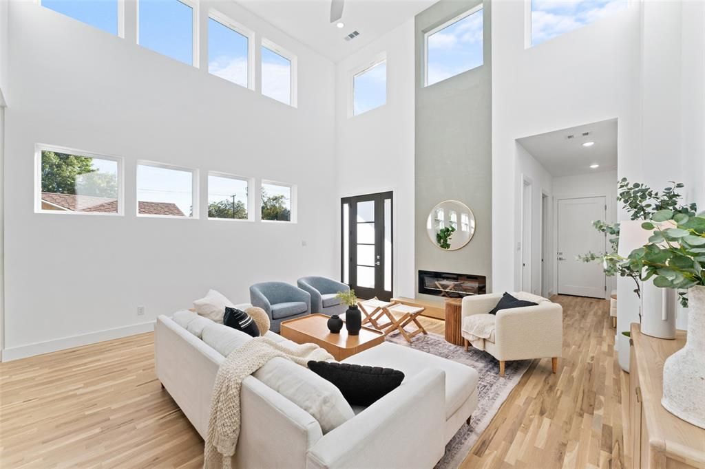 A&B Custom Homes has done it again! Modern luxury meets prime location in this brand-new half duplex, offering a rare combination of design, comfort, and convenience. Featuring three spacious bedrooms, each with its own full bathroom, and a first-floor primary suite, this home is designed for both functionality and style. Step inside to soaring 19-foot ceilings in the living room, creating an airy, open-concept space centered around a sleek electric fireplace and an abundance of windows that allows the natural light to flood all the spaces. The home showcases white oak hardwood floors throughout the living areas and bedrooms, complemented by custom white oak cabinetry in the kitchen and baths. Quartz countertops, a gas range, and a tankless water heater bring elevated performance and energy efficiency, while foam insulation and a front and back sprinkler system add everyday ease and comfort. Perfectly positioned across the street from a brand-new Target and a soon-to-open Halperin park above I-35, this property puts you at the center of growth and excitement. Plus, you're just minutes from downtown Dallas, making it ideal for anyone who wants modern design paired with an unbeatable location. Sleek architecture, quality materials, and proximity to the city's newest amenities "” this home truly has it all.