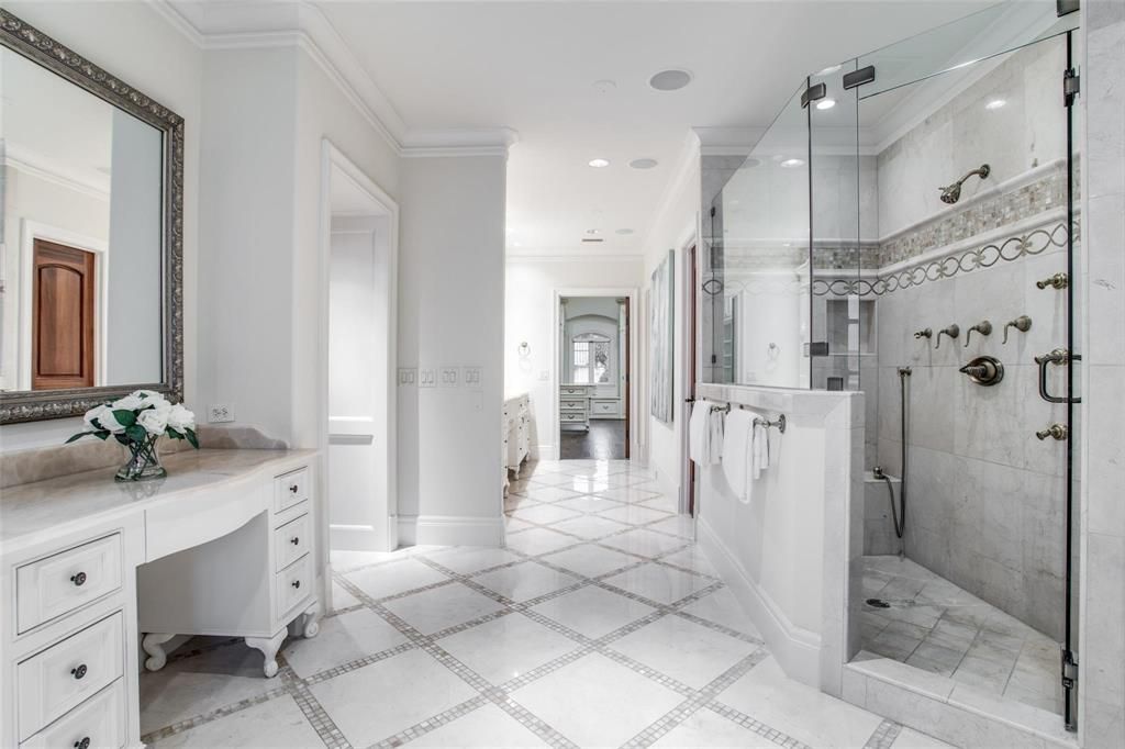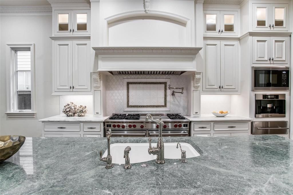 Experience elevated living in this immaculate Highland Park home, blending luxury and livability just steps from Armstrong Elementary. Designed to feel both sophisticated and relaxed, the home offers an open floor plan ideal for effortless entertaining. With 5 bedrooms, 6.2 baths, and five fireplaces, the interiors are richly appointed. The chef's kitchen features Wolf appliances, a built-in SubZero refrigerator, and a Miele coffee machine, while a unique wine cellar connects both the formal dining room and kitchen. The gorgeous, spacious primary suite provides a serene retreat. Beyond the main living areas, you'll find leathered bar ceilings, French doors opening to artificial turf, and beautiful landscaping, creating an inviting indoor-outdoor flow. The home sits on a generous 65 x 150 lot, offering exceptional space and privacy. A detached back house includes a golf simulator and movie theater, not counted in the home's square footage, and can be converted back to a three-car garage if desired. Additional features include a built-in grill, camera system, and integrated audio throughout. A remarkable opportunity to enjoy refined comfort and premier walkability in the heart of Highland Park.