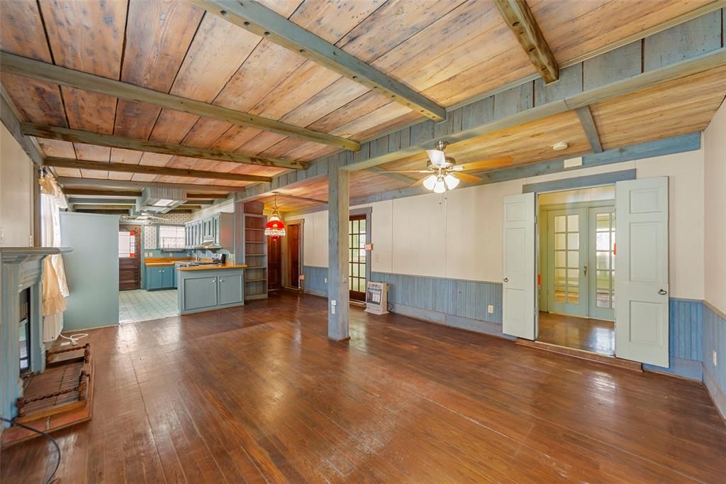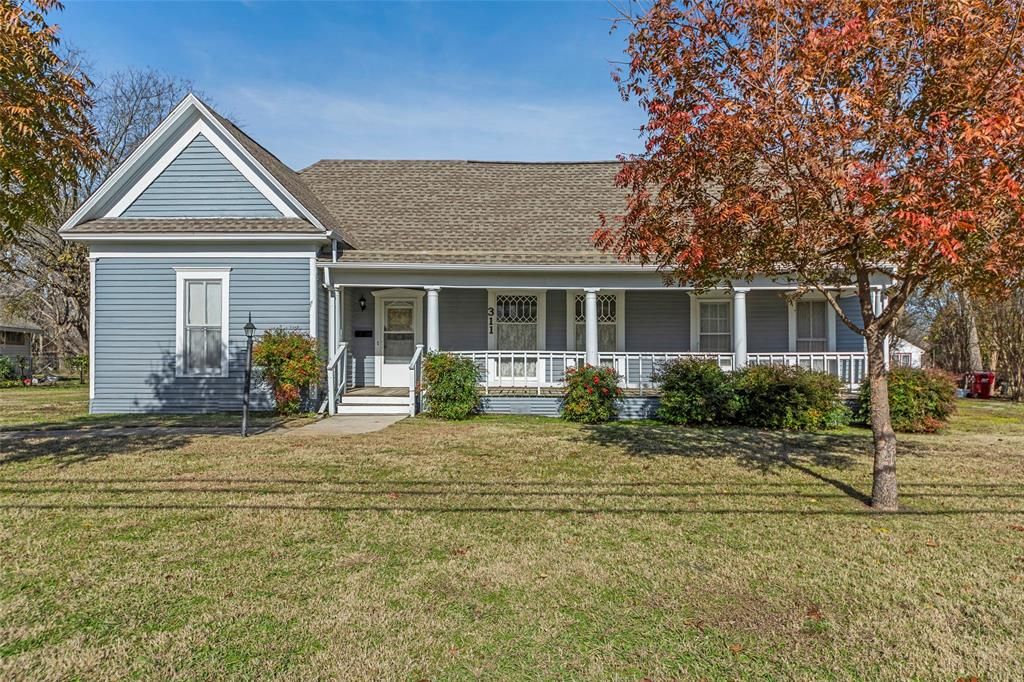 Welcome to this charming home set on a spacious 0.5-acre lot, surrounded by mature trees that offer both beauty and privacy. Relax and enjoy the outdoors from the inviting large front porch or the covered back patio, perfect for morning coffee or evening gatherings. Inside, you'll find large rooms throughout, including two living areas, each featuring its own fireplace for a warm and welcoming atmosphere. The formal dining room is ideal for hosting family meals and special occasions. The kitchen offers tons of storage space, decorative lighting, and room to work and entertain with ease. Outside, the property includes an extra-large garage or workshop, plus an additional shed, giving you abundant space for tools, hobbies, or extra storage. The large yard provides endless potential for gardening, play, or future outdoor projects.