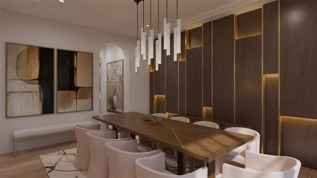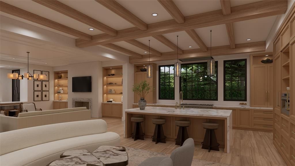 This new construction estate by Avida Custom Homes sits on a prominent corner in Highland Park and is scheduled for completion in Spring 2026. Encompassing 8643 SF this residence offers a thoughtfully designed floor plan ideal for both grand entertaining & everyday family living. The home welcomes w a luminous foyer featuring custom paneled ceiling, designer chandelier & floating staircase framed by oversized Kolbe windows. Gracious gallery leads to formal living rm w marble FP and adjacent dining rm accented by a Holly Hunt Studio chandelier, bespoke finishes & walnut-planked LED-lit feature wall. The morning rm & gourmet kitchen features Wood Mode rift-cut white oak cabinetry, Calacatta Borghini slab countertops & backsplash premier appliances includ 60-inch Lacanche range, Sub-Zero refrigerator & freezer, Miele coffee maker, Wolf microwave & Scotsman ice maker. Adjacent catering kitchen provides addt storage & appliances, includ a Wolf oven & 2nd Miele dishwasher. Family rm features a Calacatta Danby marble FP, Jonathan Browning chandelier & custom built-ins. Nearby are a formal study, a sophisticated bar, & a climate-controlled wine rm w Calacatta Statuary Extra countertops. A private downstairs guest suite completes main level. Upstairs, the serene primary suite overlooks pool & grounds & includ a beverage bar, 2 spacious closets, & dual spa-inspired bathrooms w Ann Sacks marble, walk-in showers, & a soaking tub. 4 additional en-suite bedrms complete level, w one acting as a flexible-use rm. Addt. highlights includ white oak hardwoods throughout, Kallista and Waterstone fixtures, Lutron lighting, outdoor climate controlled loggia w built-in screens, Wolf grill, heated pool & spa, oversized 3-car garage, smart home prewiring & a generator. Constructed w concrete stucco, clay tile roof & pier & beam foundation this exceptional home offers timeless design, modern technology & an ideal address near HPISD schools, shopping & dining.