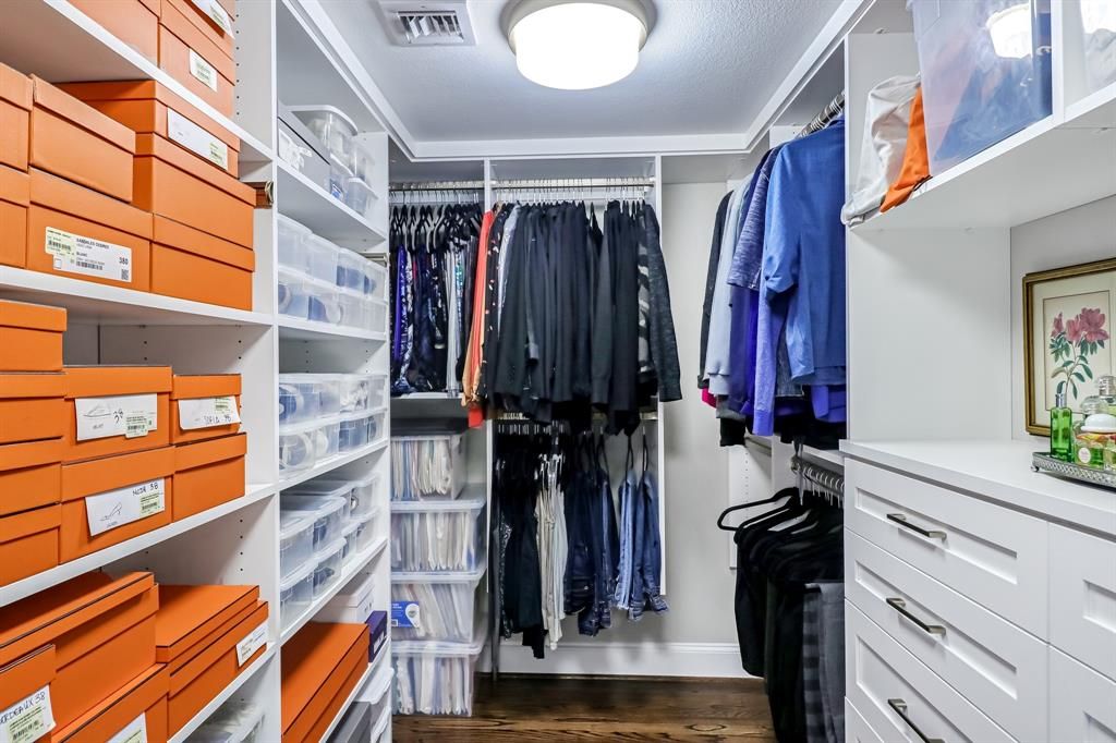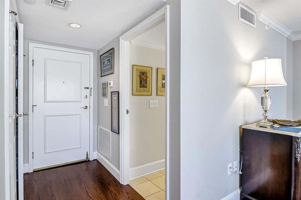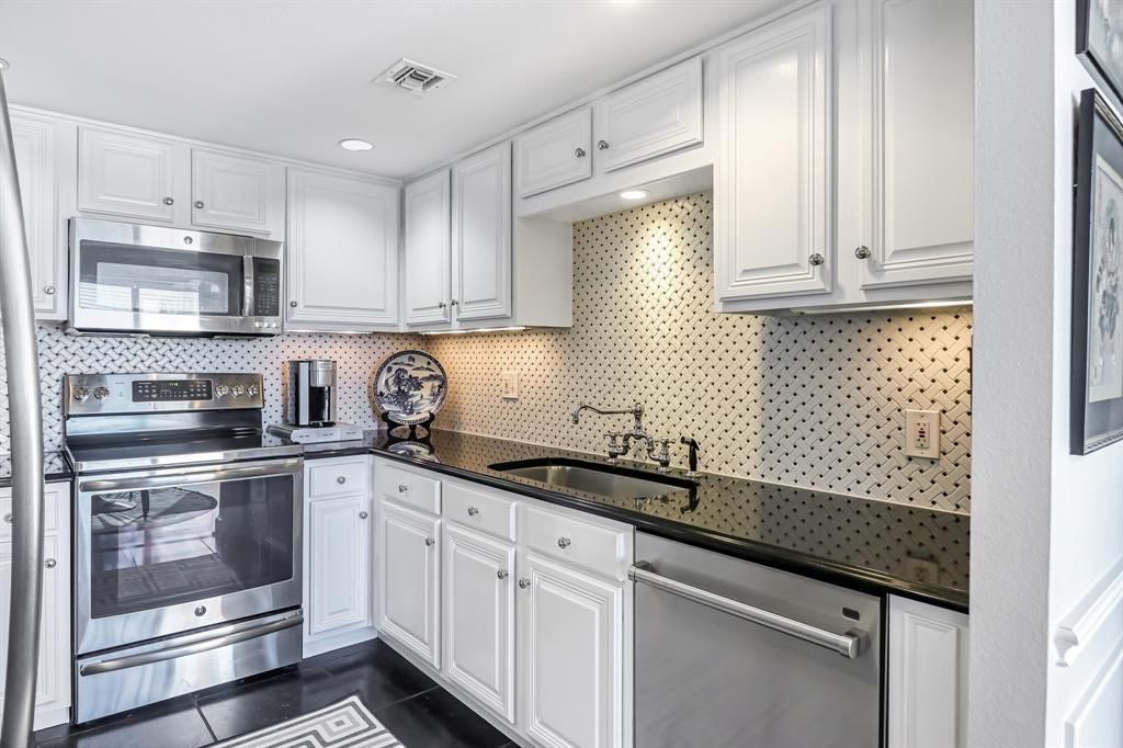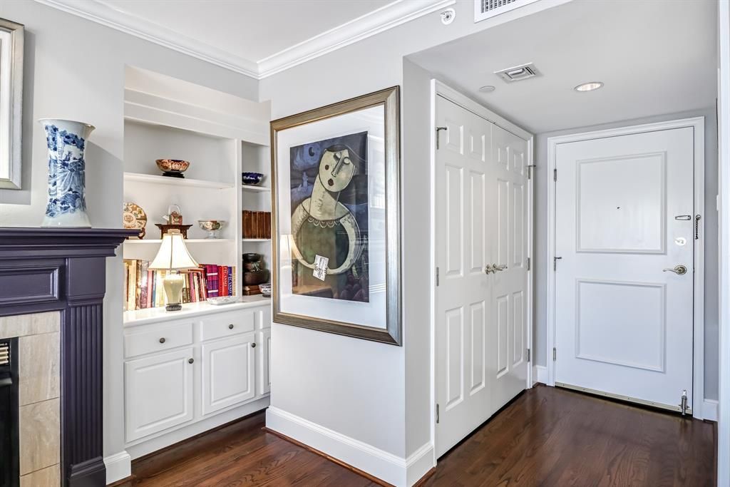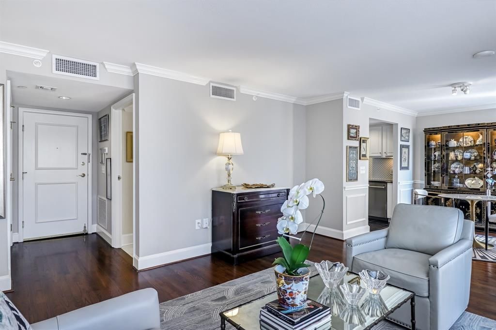 Sophisticated One Bedroom, One and half Bath residence located in the prestigious CRESTPARK in Highland Park. This beautifully UPDATED 5th floor home is filled with natural light and features an open concept design, gleaming hardwoods, tranquil courtyard with skyline views, custom California closet storage with sleek modern finishes throughout. A full size washer and dryer adds everyday convenience. Perfectly positioned just steps from Whole Foods, premier dining, and just moments to Highland Park Village along with effortless access to the Dallas North Tollway. The CRESTPARK offers a truly luxury lifestyle with 24 hour concierge services, valet parking, building security, dual fitness centers, elegant library and piano room, along with banquet and entertaining spaces, resort style pool and lounge areas, grilling stations, lush landscaped gardens and robust calendar of curated community events. A real pied-a-terre type unit. Located in coveted Highland Park ISD, pet friendly, 2 under 30 lbs must get breed weight approval 1 assigned secured underground parking.