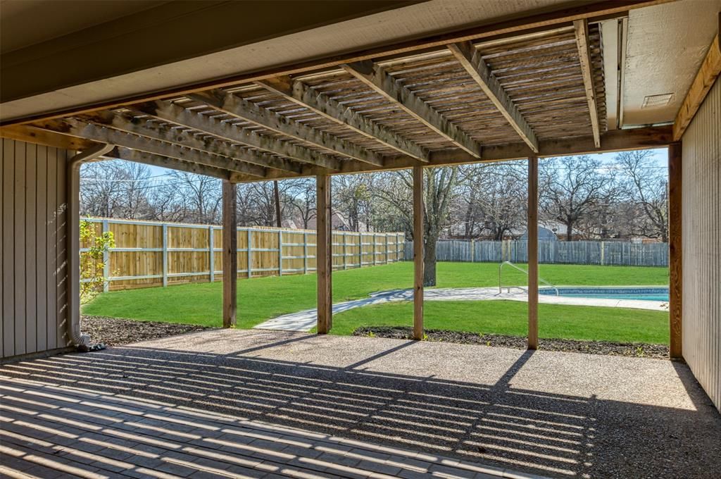 Stunning updated home situated on a 0.611 acre, treed lot. Located in an amazing neighborhood with beautiful homes. The floorplan offers a large living room with coffered ceilings, a spacious game room, a split primary that has two walk in closets and two vanities. The kitchen and dining space is an entertainers dream flowing seamlessly together with a large eat-in island, and an amazing butler's pantry that has a built in wine rack, wine cooler, sink, and coffee bar as well as abundant cabinets for counter top appliances. Updates completed in 2026 include new paint inside and out, all flooring, quartz and granite counter tops, back splash, all plumbing fixtures and light fixtures, cabinet and door hardware, shower and tub tile surrounds, bathtubs, and much more! The private backyard has an in ground pool and a 21' x 19' covered patio perfect for backyard cookouts and a large grassy space that is perfect for kids and pets. Enjoy parking convenience with a circle drive and a 2 car attached garage on the side of the home and a detached 1 car garage with a 12x8' air conditioned workshop. This home also has a 24kw Generac Generator to keep you warm or cool in our uncertain Texas weather!!