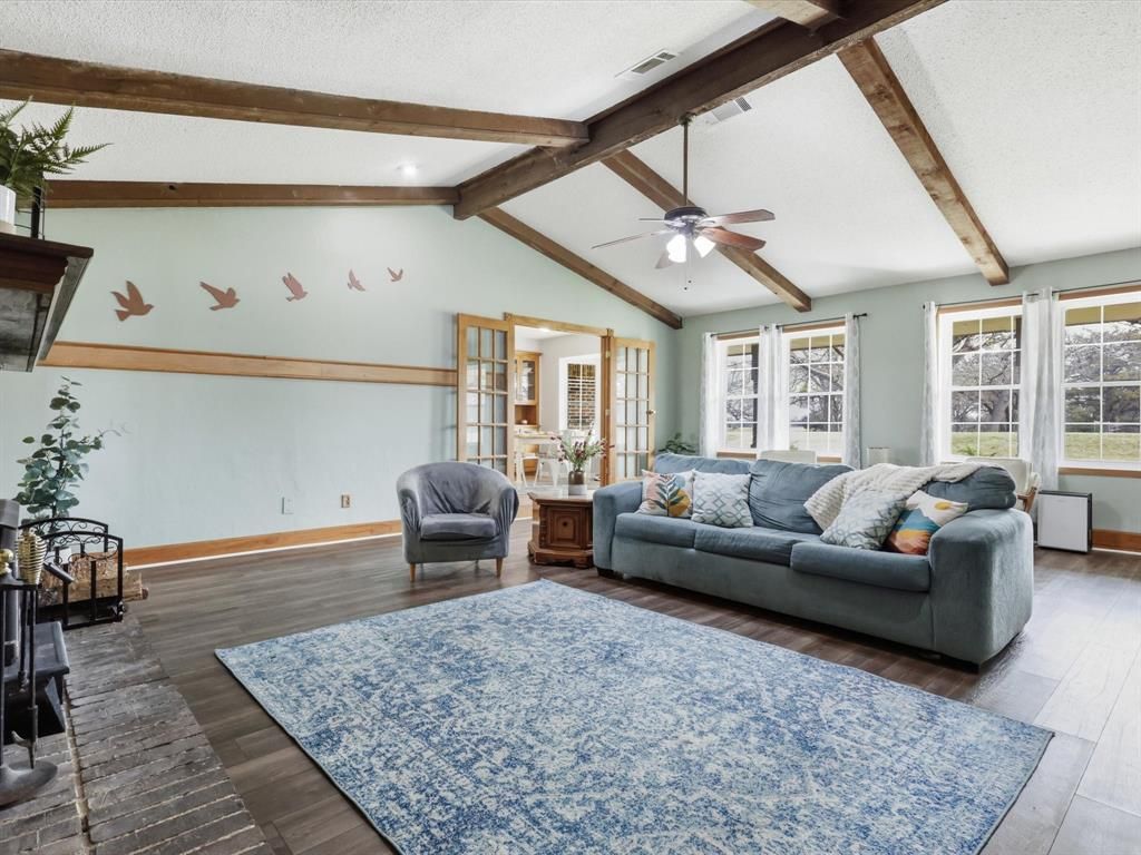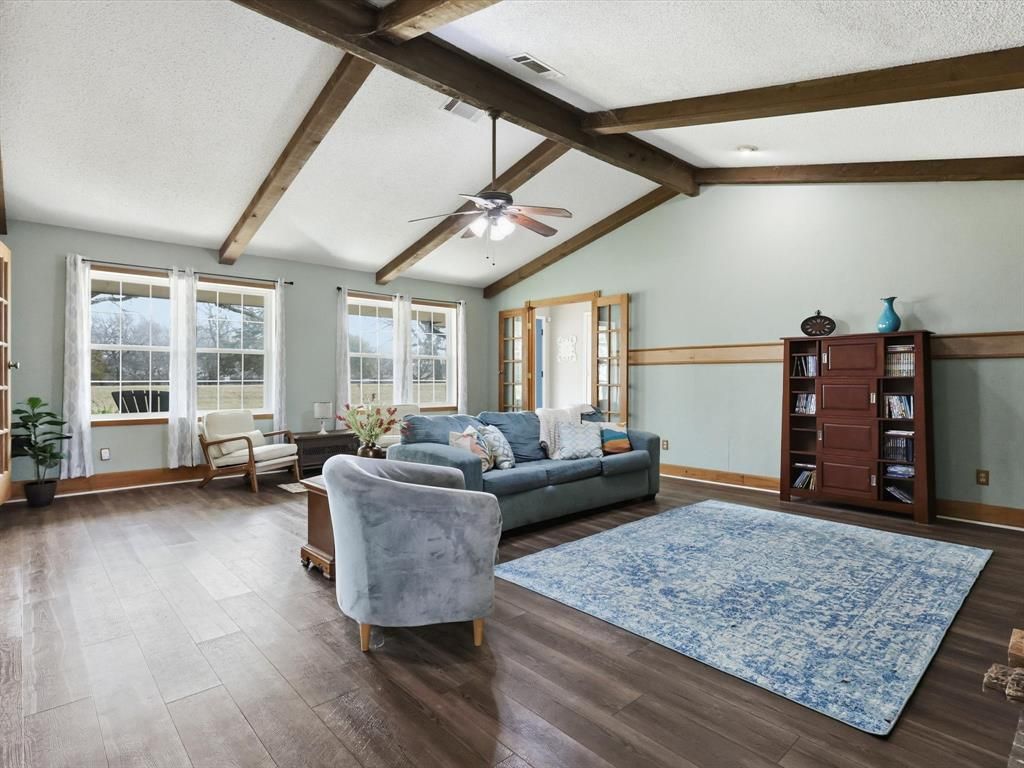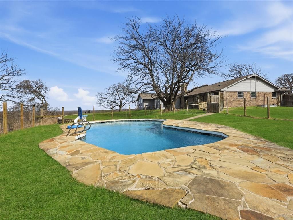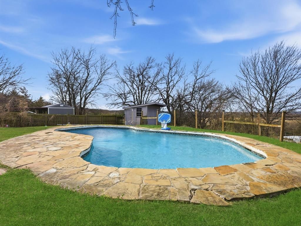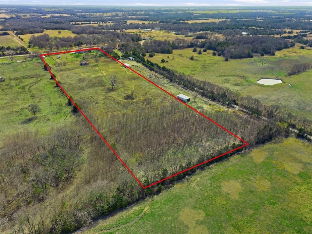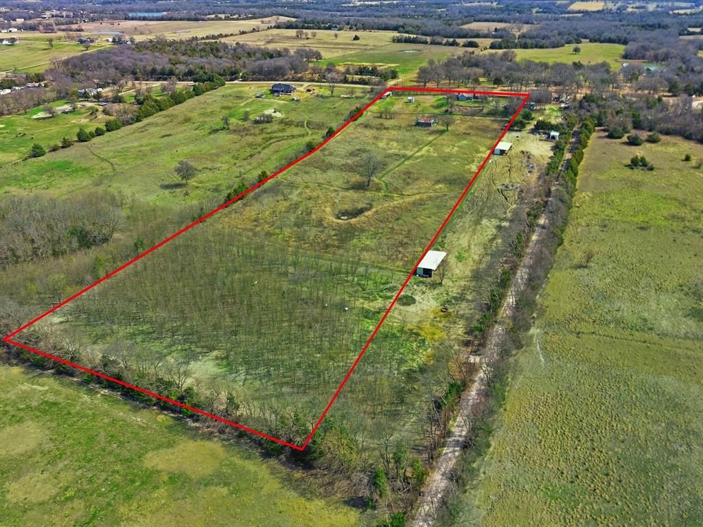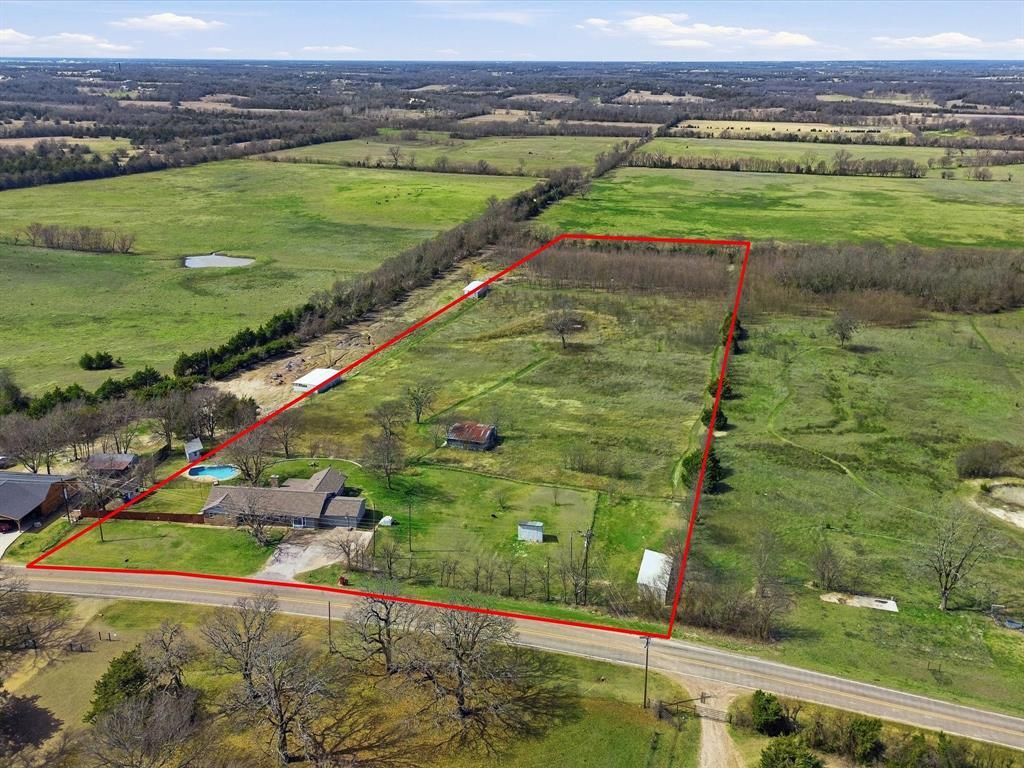 This nearly 9-acre property offers rolling hills, breathtaking sunsets, and incredible views that you won't want to leave! The property is loaded with extras: mature fig and pecan trees, an in-ground pool with pool shed, a chicken coop, goat fencing around the entire perimeter, a barn with stalls, machine shed, well house, and an underground storm shelter! This 4-bedroom, 3-bathroom home features a large office with bay window and built-ins, perfect for working from home! A large kitchen with 30 cabinets for storage galore, and a dining area with another bay window. Two indoor storage closets, a cedarwood closet, and two garage storage rooms... storage space GALORE! Multiple living areas including the main living room with a brick wood burning fireplace plus a bright sunroom that can be used as a second living area, game room, you name it! Other highlights include beautiful wooden beams and tall ceilings in the living room, a wood burning stove in the primary bedroom, LVP flooring, a reverse osmosis water system, and high-speed internet. All this, with an easy commute to Greenville, McKinney and more! Ask about the exclusive lender incentive offered!