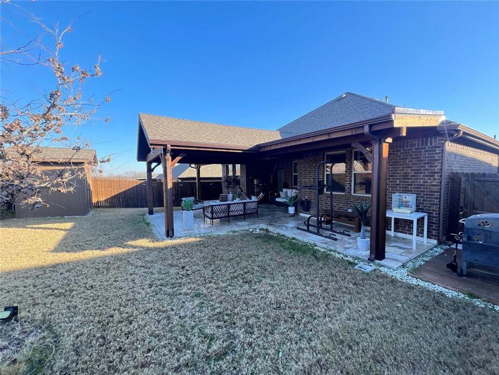 Take a look on this beautiful 3 beds and 2 baths home! With open-concept design ideal for family gatherings, kitchen with stainless steel appliances, Eat in island that connect with the dinning room. Covered patio with wooden beams, ideal for outdoor relaxation or entertaining. Enjoy Neighborhood amenities as pool, playground and walking trails. 10 minutes away from Little Elm Park and E Eldorado Pkwy. You must see!