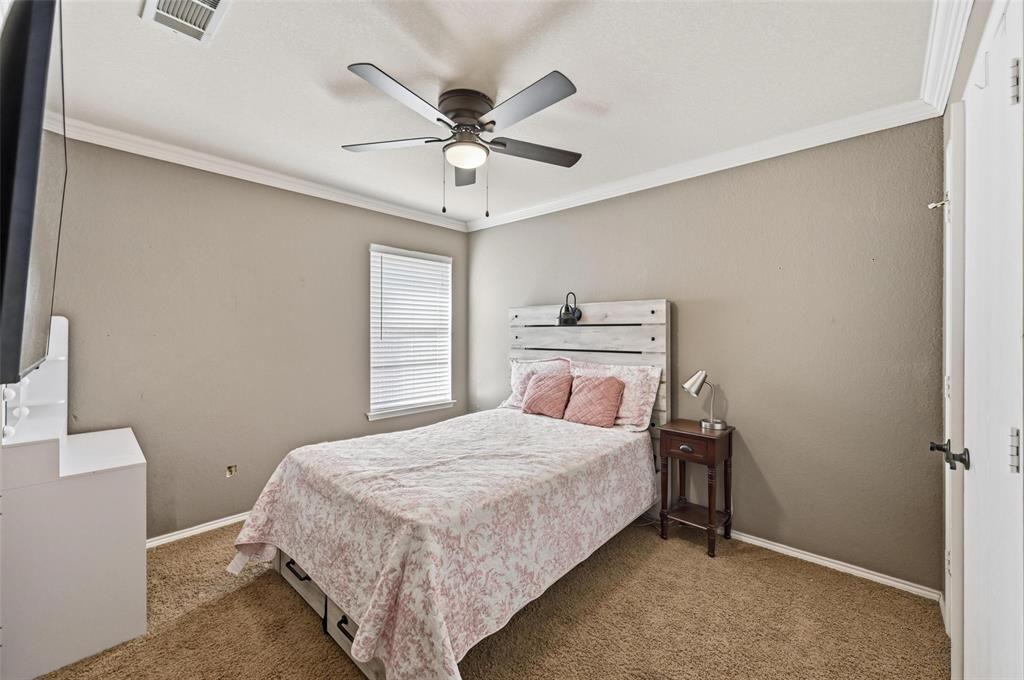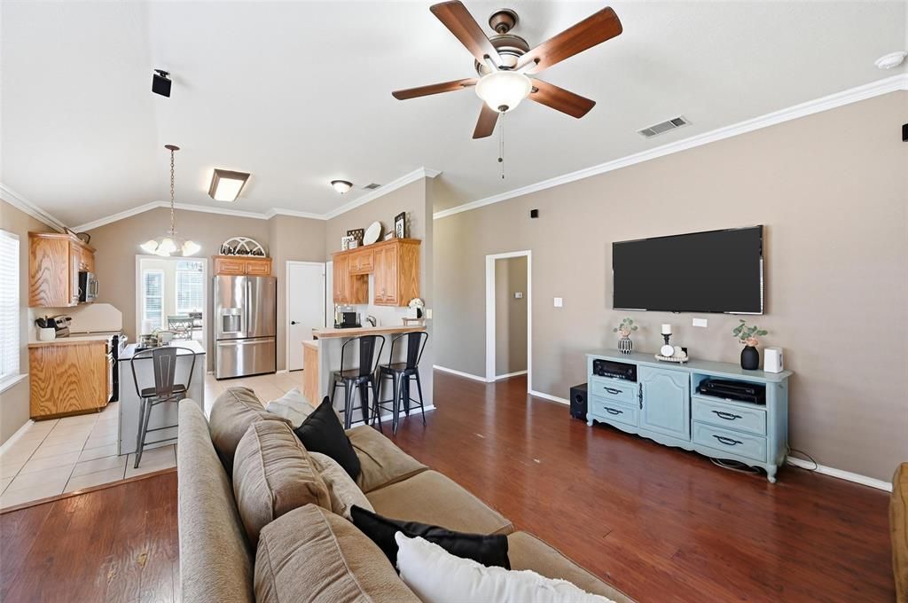 $10,000 flooring allowance with purchase. Welcome to this beautifully maintained single-story home offering space, comfort, and a functional layout in a desirable Mansfield neighborhood. This inviting property features multiple living and dining areas, making it ideal for both everyday living and entertaining. The spacious living room is highlighted by vaulted ceilings, rich wood flooring, and a cozy brick fireplace, creating a warm focal point for gatherings. The kitchen offers abundant cabinetry, stainless steel appliances, a center island for additional prep space, and a bright breakfast area filled with natural light. A separate formal dining room with an elegant arched window provides the perfect setting for hosting family and friends. The generously sized primary suite includes a large walk-in closet and a private bath with dual vanities and a separate shower. Additional bedrooms are well-proportioned and offer flexibility for family, guests, or a home office. Step outside to a large, fenced backyard with a covered patio, perfect for relaxing, grilling, or enjoying the outdoors. A new roof was installed in 2025, a new HVAC system was installed in 2018 and is still under warranty, and a new hot water heater was also installed last year. With its open layout, comfortable living spaces, and convenient location near schools, shopping, and major commuting routes, this home is ready for its next owner to move in and make it their own.