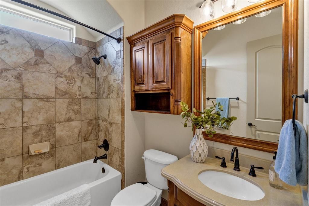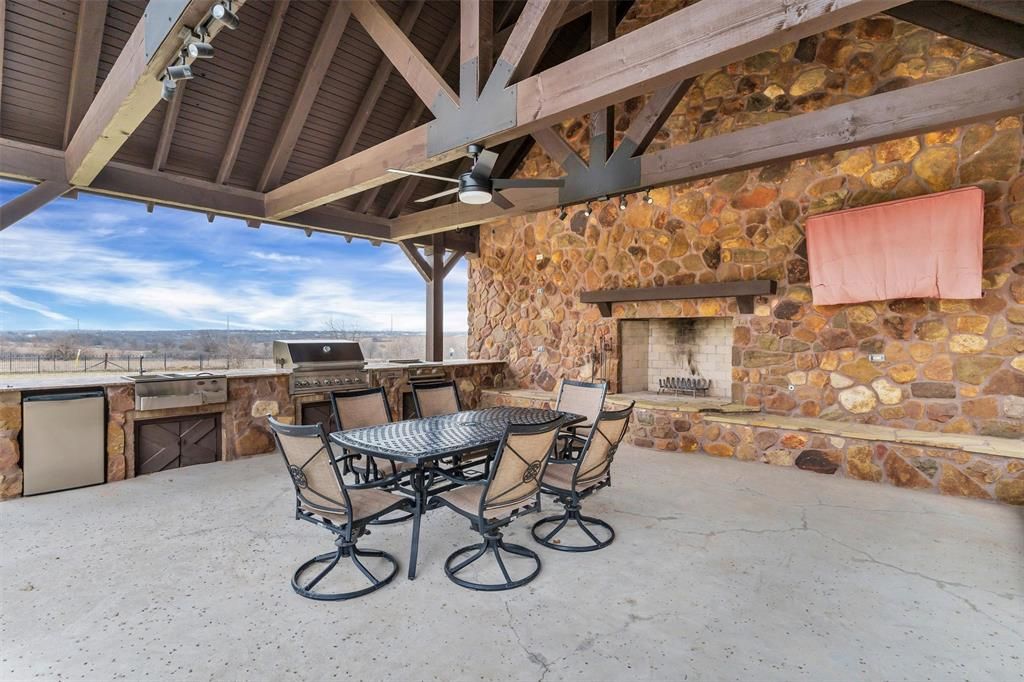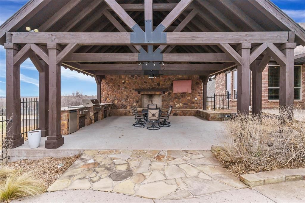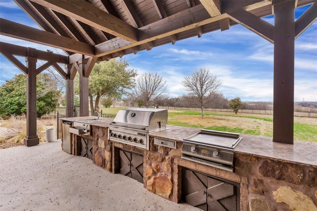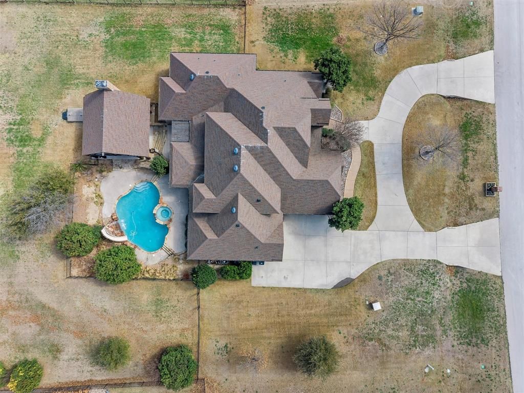 REMODELED CUSTOM HOME WITH LUXURY LIVING NESTLED ON 1.27 ACRES WITH A RESORT STYLE BACKYARD OASIS PLUS A FARM BEHIND THE PROPERTY FOR EXTRA PRIVACY! Designed for both entertaining and everyday comfort, this home features 4 bedrooms, 4 bathrooms, a private study that could also serve as a 5th bedroom, game and media rooms, salt water pool and spa with water features including a slide and waterfall, enormous outdoor kitchen and entertaining area with wood burning fireplace, ss hibachi gril, outdoor grill, granite countertops, additional covered patio areas,. The oversized chef's kitchen offers granite countertops, ss appliances, double ovens, gas cooktop, a water dispenser, open floor plan overlooking the warm and cozy living room with a wood burning fireplace. Major updates include new hardwood flooring, new carpeting, new updated fixtures, freshly painted, both ac units replaced in the last few years, class 4 impact resistant roof, whole house water filtrations system, instant hot water system, the list is long and you will see pages of upgrades in the agent portal documents. Whether hosting summer pool parties or cozy nights by the fire watching your favorite movie outdoors, this home delivers year round enjoyment. No water bill and radiant barrier insulation for lower monthly expenses is a nice bonus. Residence enjoy the close proximity to Eagle Mtn.Lake, hiking trails, golf courses, restaurants like Tx Roadhouse, Chik Filet, Rosa's cafe coming soon, Starbucks, Villa Grande Mexican, Texan Diner. Grocery stores are close by too including Walmart, Kroger, Albertson's, HEB. Easy access to main highways are just a few miles away.