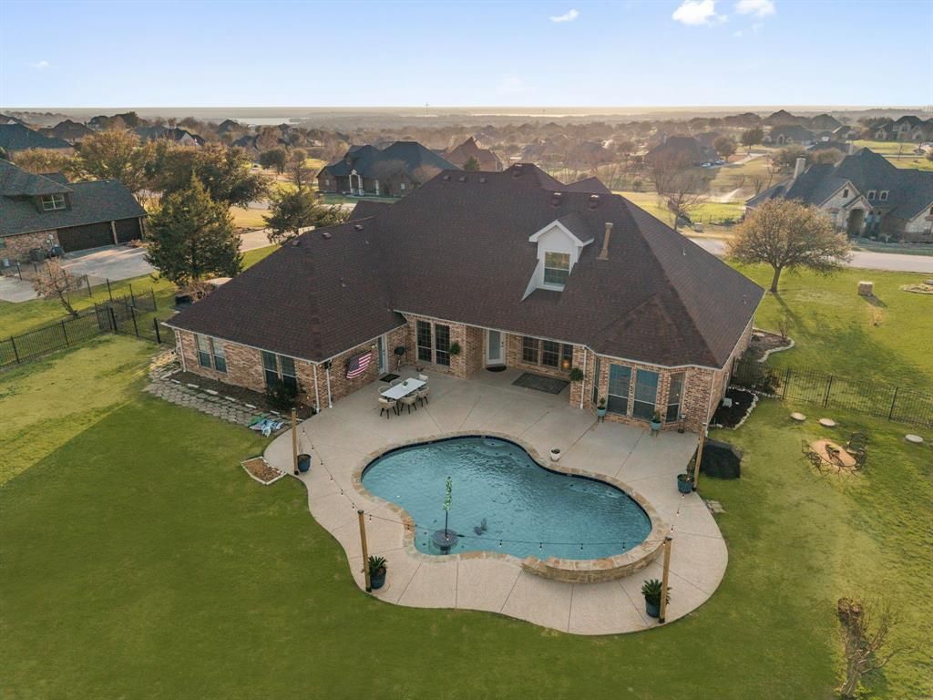 A location that can't be beat! Situated on 1.49 acres outside city limits in the highly sought-after gated community of Harbour View, this home is less than one mile from Harbour One Marina at Eagle Mountain Lake. Store your boat nearby and enjoy true lake living, all while being zoned for the brand-new Eagle Mountain High School in one of the area's top school districts. Designed for entertaining, the open floor plan is filled with natural light and offers seamless flow between living spaces. The spacious family room opens to a private backyard retreat featuring a gunite swimming pool and expansive green space. A dedicated garden area provides the perfect foundation for raised beds, landscaping, or outdoor entertaining tailored to your vision. The home office features built-in desk and shelving with coffered ceilings. The kitchen includes granite countertops, gas stove, generous prep space, and open to the main living areas. Three oversized secondary bedrooms are split from the private primary suite, which includes dual sinks and a walk-in shower. Upstairs offers exceptional flexibility with a media room, a private 5th bedroom ideal for guests or teens, and a second living area that can function as a game room, gym, or play space. Community amenities include a security gate, rolling hills, walking trails, park with jungle gym and fishing ponds. Rare acreage, gated privacy, lake access nearby, and versatile living space "” don't miss this opportunity!