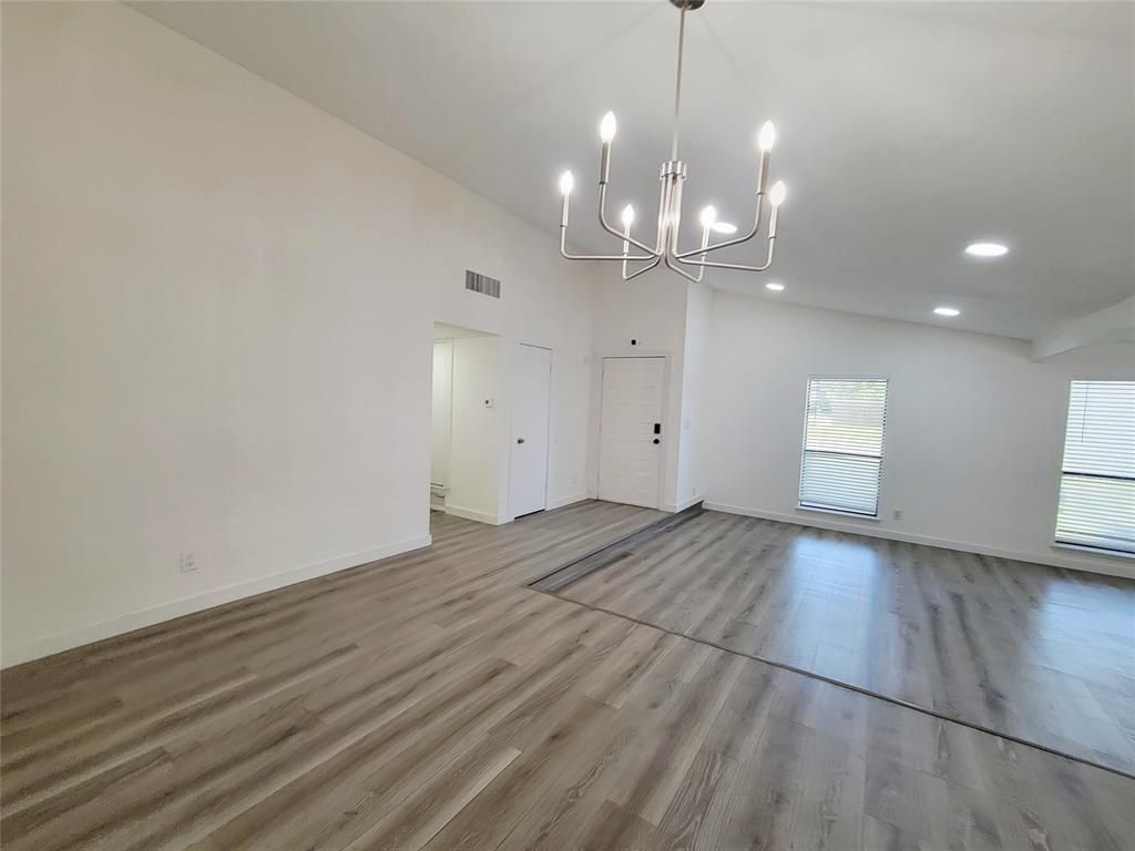 Price for sale! Grab the opportunity before it gone! Fully updated Ranch style one story house with swimming pool! 3 spacious bedrooms and 2 living rooms and a formal dining area, this residence offers plenty of rooms for family & guests. Upon entering the door, there is vaulted ceiling spacious living room with build in bookshelf and desk perfect for home office. The expansive kitchen is a chef's dream, equipped with brand new quarts countertop and eat in kitchen island, Stainless Steel appliance, new tile backsplash and brand-new vent hood. Kitchen opens to living room with modern design fireplace, that's perfect for hosting friends & family gatherings. New showers and vanity, new recess lights and chandelier add charm to the house. Step outside to the covered patio, there is a beautiful swimming pool with covered patio, whether you're sipping coffee in the morning or hosting a BBQ party in summer for your family and friends, this outdoor space enhances the home's appeal. House is fresh painted interior and exterior fully and NEW ROOF. 2 munities driving to the lake Hubbard and easy access to major highway and local shopping and restaurants . This is place you can call home !