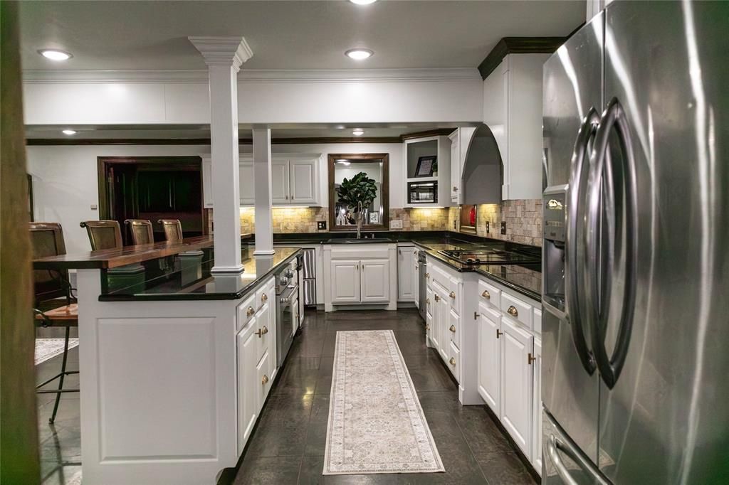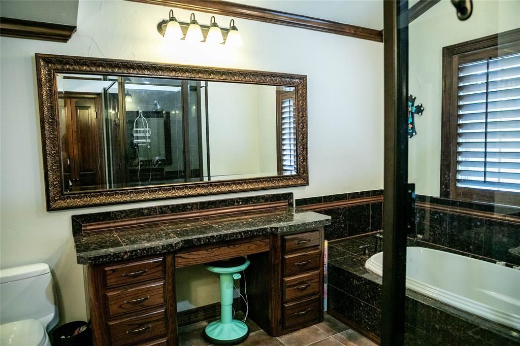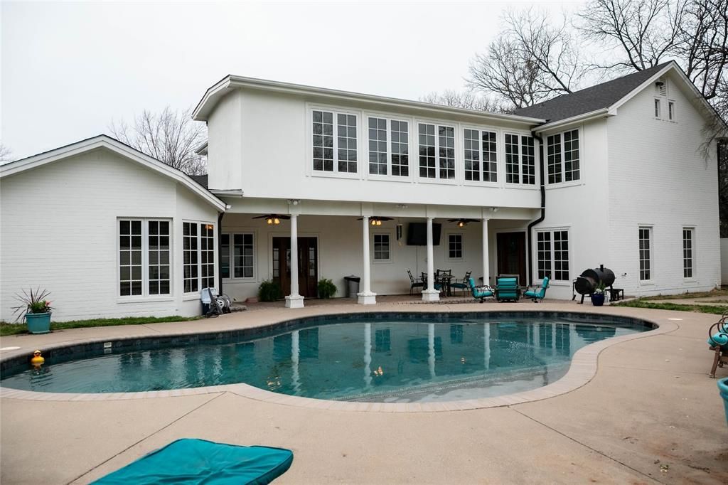 This beautiful 4 bedroom, 3.5 bath brick home sits back away from the street on a large lot. It has gorgeous drive up appeal and includes a relaxing pool in the backyard. The home is very large home with a vast amount of storage and closet space throughout. The home is great for entertaining with plenty of space indoors, as well as outdoors and it has room for lots of cars in the large circular driveway. This home includes a large gourmet kitchen with a large island and it is open to the large dining room. There are at least 2 primary master suites and includes another smaller suite upstairs with its own ensuite, living area & kitchen-dining room. There is a built-in desk-office space upstairs with a view above the beautiful pool below. The spacious living room has a gas log fireplace and its own entrance onto the back patio. The downstairs master suite features a large bedroom with ensuite; garden tub, separate shower, and 4 separate large closets with organized closet systems. This awesome home is a must see! Too many amenities to list them all.