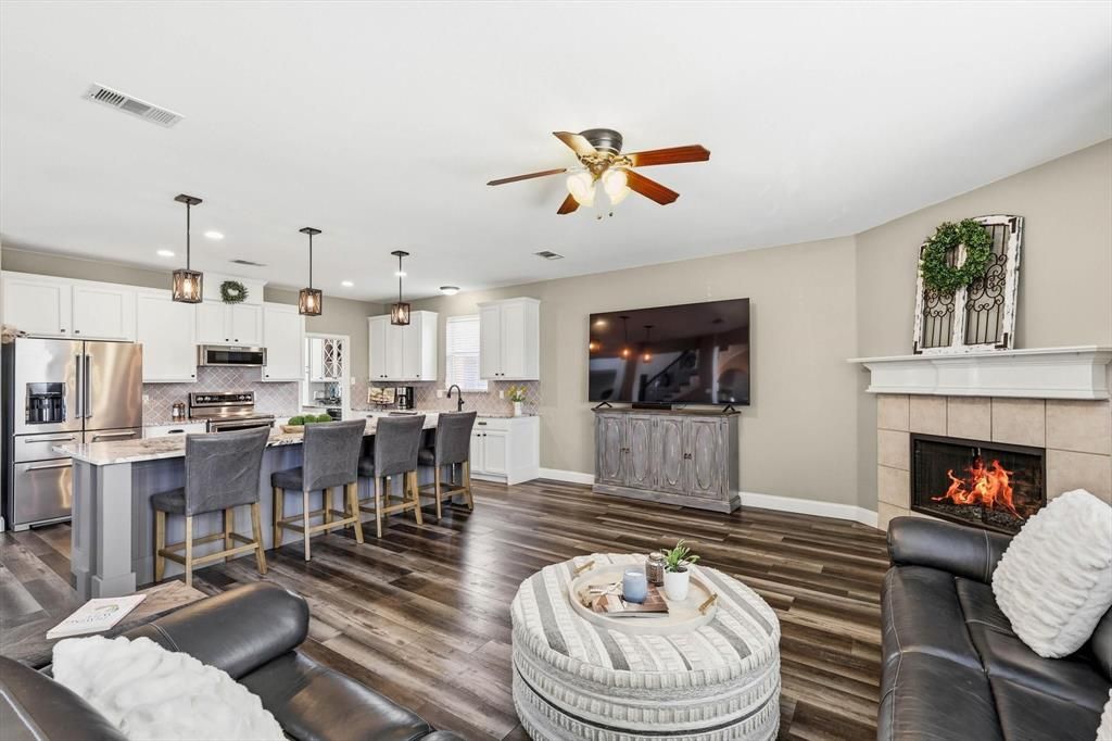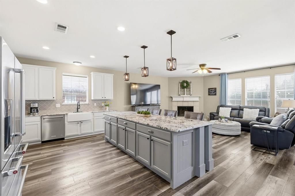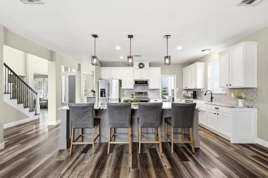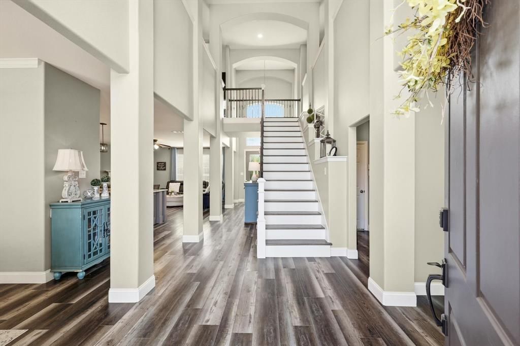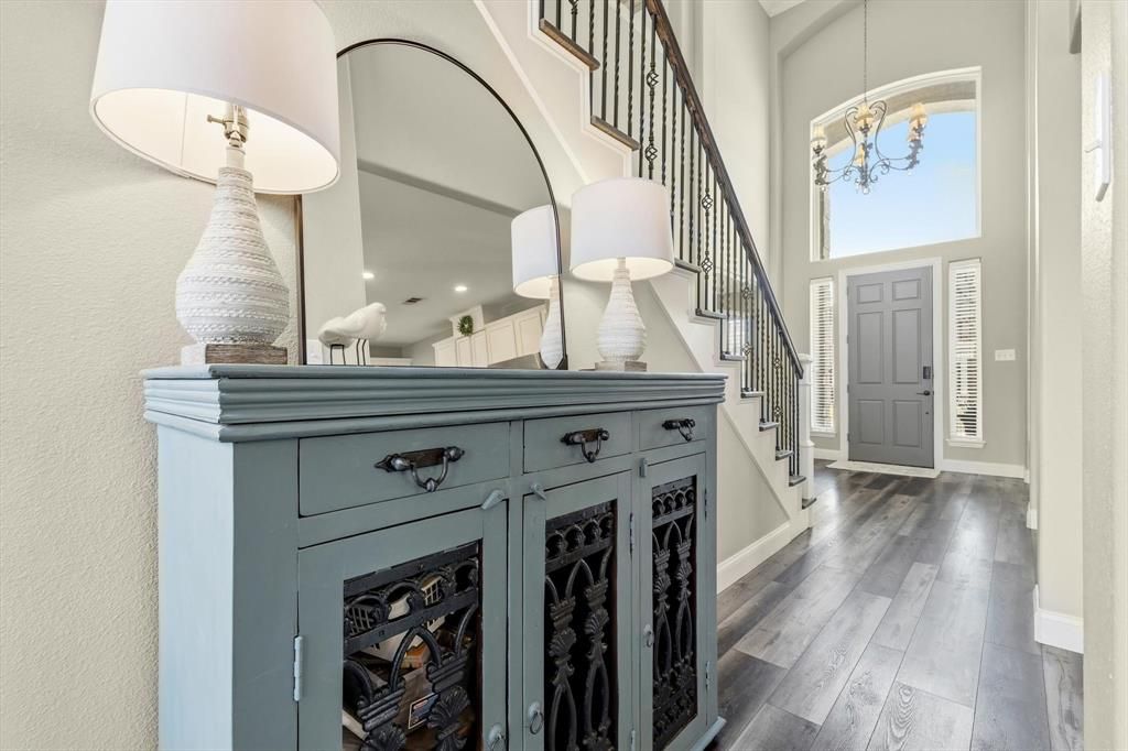 This stunning home has been beautifully updated and offers the perfect blend of elegance, comfort, and functionality. Step inside to soaring ceilings and an open, airy layout that immediately feels warm and inviting. The home features all new flooring and a gorgeous gourmet kitchen with custom cabinetry and an impressive 10+ foot island, creating the ultimate gathering space for friends and family. With abundant workspace and a seamless flow into the living areas, the open floor plan is perfect for both entertaining and everyday living. Designed with space and versatility in mind, the home offers multiple living areas, a private office, a game room, and a dedicated bar area, providing plenty of room to relax, work, and entertain. The spacious primary suite offers a peaceful retreat, while all secondary bedrooms are generously sized with excellent storage throughout. Step outside to a spacious backyard, perfect for gatherings, play, or simply enjoying the outdoors. The oversized 3-car garage provides ample space not only for vehicles but also for storage or a workshop. Meticulously maintained and truly move-in ready, this beautiful home is located in the highly sought-after community of The Legends in The Colony, known for its wonderful neighborhood feel, community pool, and scenic walking trails. Enjoy a prime location just minutes from Grandscape, Lake Lewisville, Hawaiian Falls, Topgolf, and an abundance of shopping and restaurants, with convenient access to major highways, schools, and local amenities. Experience refined elegance and exceptional comfort in a truly outstanding location. **Home Furnishings Also For Sale and Option to Purchase Furnished** Nearly $80K in thoughtful updates and upgrades make this home stand out. Pride of ownership is evident in every detail. Move-in ready!