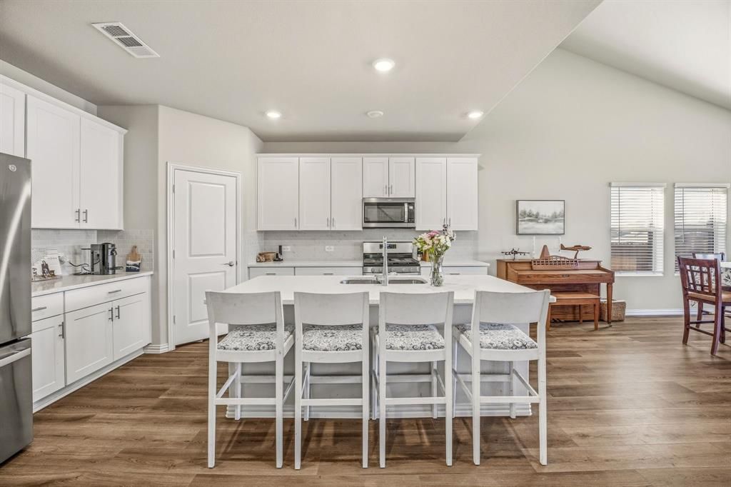Welcome to 2932 Fox Trail Lane, Fort Worth, TX, a like-new 5-bedroom, 3-bathroom home built in 2024 in the sought-after Palmilla Springs community of West Fort Worth. Located just minutes from downtown Fort Worth, I-30, major employment centers, dining, and entertainment, this energy-efficient home offers modern design and everyday convenience. Step inside to an inviting open-concept floor plan designed for both entertaining and comfortable daily living. The spacious living room flows seamlessly into the dining area and bright kitchen, creating a central gathering space filled with natural light. The kitchen features crisp white cabinetry, white quartz countertops, stainless steel appliances, designer finishes, and a large island with bar seating that offers the ideal space for hosting family and friends. The private primary suite serves as a relaxing retreat, while four additional bedrooms provide flexibility for guests, a home office, workout space, or multigenerational living. Upstairs, a versatile flex space or game room offers endless possibilities as a media room, playroom, or secondary living area. Built with energy-efficient features, this Fort Worth home is designed for lower utility costs, improved indoor air quality, and year-round comfort. Conveniently located near shopping, restaurants, and Uplift Elevate charter school, Palmilla Springs offers both community charm and accessibility. If you're searching for a move-in ready 5-bedroom home in Fort Worth built in 2024 with an open-concept design near downtown, 2932 Fox Trail Lane delivers space, style, and value.