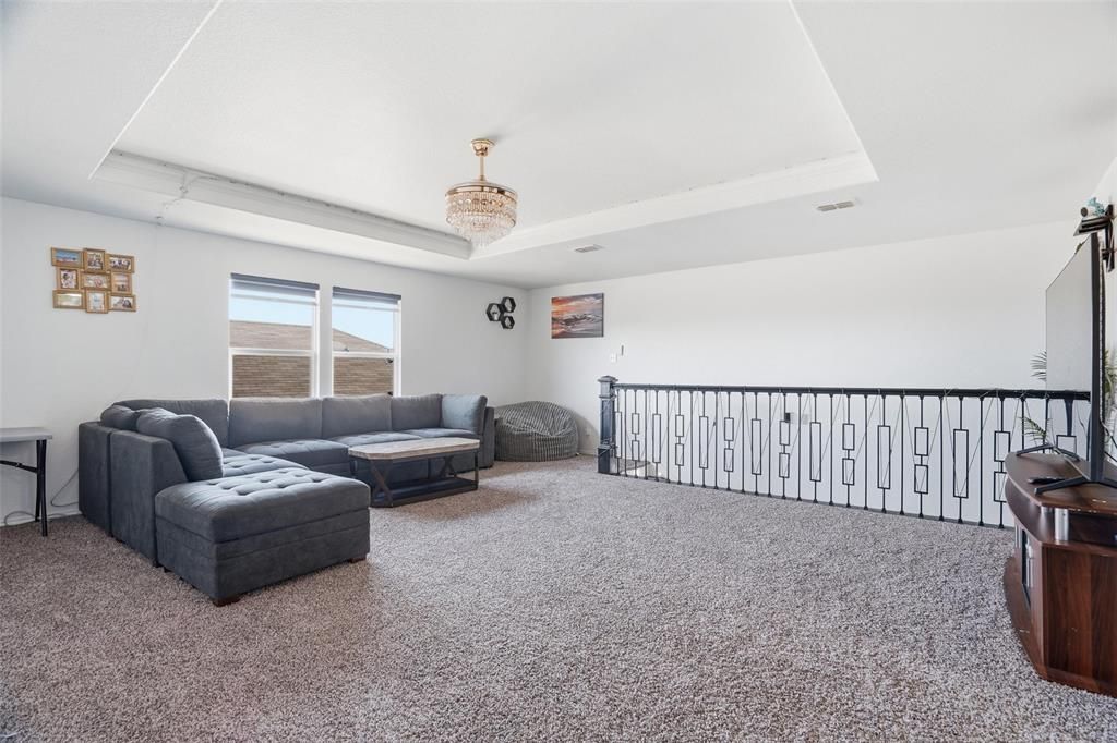 Beautiful two-story home on a corner lot, fully upgraded in 2025. This stunning residence offers 4 bedrooms, 2.5 baths, a private office, and a spacious game room. The open-concept floor plan is perfect for comfortable living and entertaining. Upgrades include a fully renovated kitchen, tile flooring throughout the home, new carpet in the upstairs and primary bedroom, upgraded stair railing, new front door, added office door, upgraded TV wall with fireplace, all bathroom vanities replaced, fresh interior paint, new ceiling lights and chandelier, all outlets replaced, and a Tesla charger installed. Front and backyard landscaping completed with added flower beds. The kitchen features a large island and generous counter space overlooking the bright living area filled with natural light. The oversized primary suite includes a spa-style bath and a large walk-in closet. Upstairs offers three bedrooms, a full bath, and a game room. Located in West Fork Ranch in Fort Worth, TX, with a community pool, walking trails, a playground, and a dog park. Convenient access to I-35W and Hwy 820, and close to shopping and dining at Alliance Town Center, and located within Keller ISD.