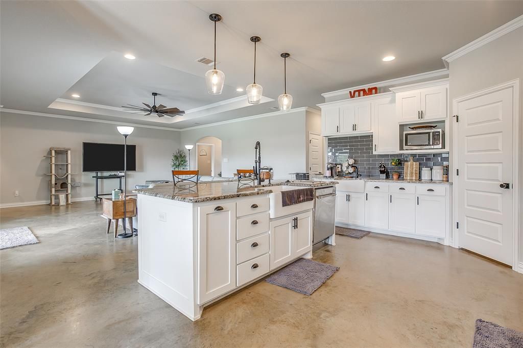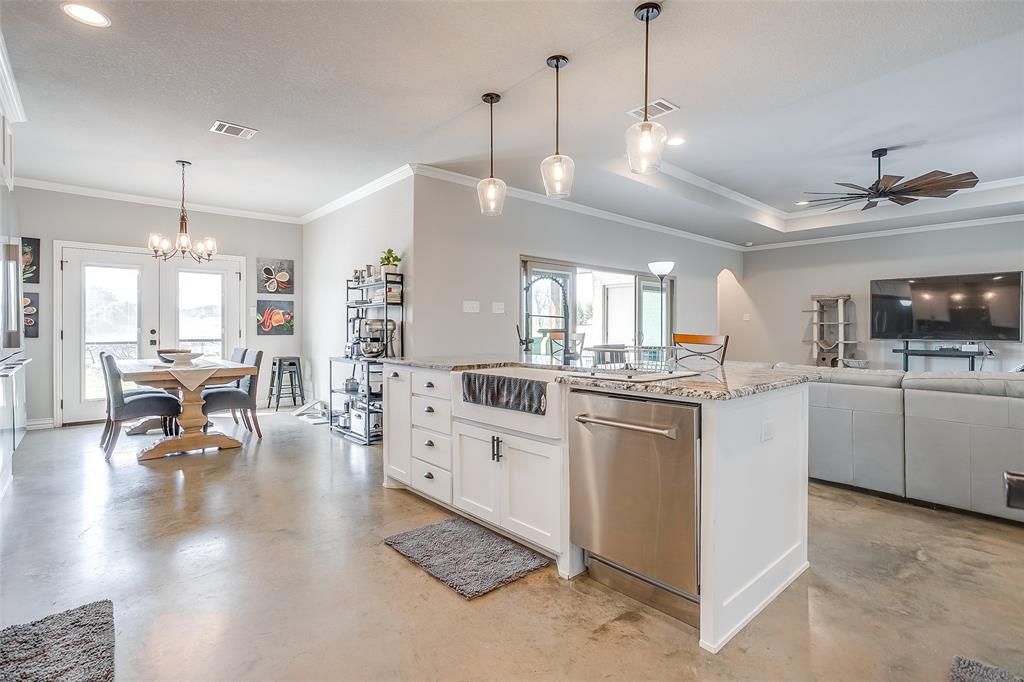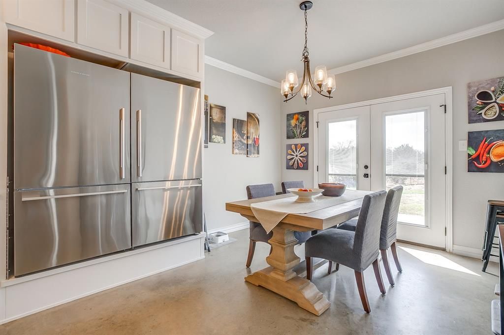 Located in the Gated Golf Course community of The Retreat, this 3-bedroom, 2 Full bathroom home sits on a spacious 0.6-acre lot and has an additional dedicated office. Built in 2021, the residence combines a functional open concept layout with high end finishes and modern durability. Home Highlights Modern Interior Features 2,255 square feet of living space with easy to maintain concrete flooring throughout. Chef's Kitchen Equipped with a large granite island, gas range, built-in refrigerator, 2 sinks and designer lighting. Primary Suite Includes a double vanity, huge shower with dual shower heads, lighted mirrors and a large walk-in closet. The split-bedroom floor plan provides privacy for guests plus a home office. Several Sets of French Doors add elegance and help blend the home with the outdoor natural beauty. Efficiency includes a gas heated tankless water heater and energy-efficient construction. A large, private 0.6-acre homesite with a covered back patio and a private backyard. The patio has electric and plumbing in place to accommodate a hot tub or pool if you choose to add one also Plumbing and gas stubbed on the patio and ready for your custom build outdoor kitchen. Community Amenities: Membership includes access to the championship 18-hole golf course, designed by JJ Keegan, integrated into the natural limestone and a beautiful waterfall, a Gorgeous Clubhouse with dining, two pools, fitness center, and Pickleball Courts. Security, 24-hour guarded entrance for peace of mind. This home offers a quiet, secure lifestyle with quick access to the Chisholm Trail Parkway for an easy commute to Fort Worth. Nearby attractions for an active lifestyle include Cleburne State Park, Lake Pat Cleburne, Plaza Theatre, The Chisholm Trail Museum, The Layland Museum, The Cleburne Rail Roaders Baseball Team, Cleburne Splash Station for summer fun and so many fantastic restaurants and boutique shops!