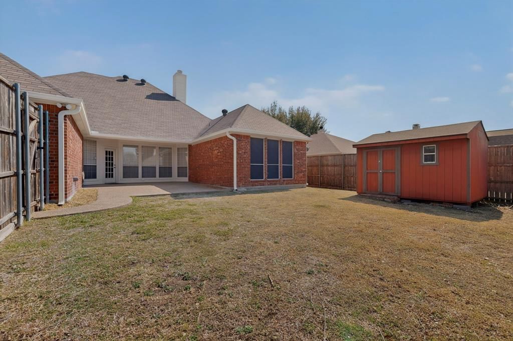 Welcome home to this beautifully updated 2,528 sq ft single-story residence that perfectly blends space, comfort, and style "” all on one spacious level! NO HOA. From the moment you arrive, you'll love the great curb appeal and welcoming presence of this home, ideally situated near the end of a quiet cul-de-sac in a highly desirable school district. Step inside to discover a bright and airy open floor plan filled with natural light and highlighted by tall ceilings and fresh interior paint. The spacious living room sits at the heart of the home, creating the perfect gathering space for entertaining or relaxing with family. The generously sized kitchen overlooks the living area, breakfast nook, and dining room, making it ideal for hosting. You'll appreciate the abundant cabinet and counter space, beautiful granite countertops, double ovens, and functional layout designed for everyday living and holiday gatherings. Just off the entryway, a private office with elegant French doors offers the perfect work-from-home space or flex room. This thoughtfully designed home features 4 bedrooms and 3 full bathrooms, providing plenty of space for family and guests. Fresh exterior paint and brand-new carpet make this home truly move-in ready. Enjoy outdoor living in the nicely sized backyard, complete with a storage building included for added convenience. Located just minutes from shopping, restaurants, and entertainment, this home offers the perfect balance of tranquility and accessibility. Don't miss the opportunity to make this exceptional property yours! 3D virtual tour and video walkthrough available in the MLS links.