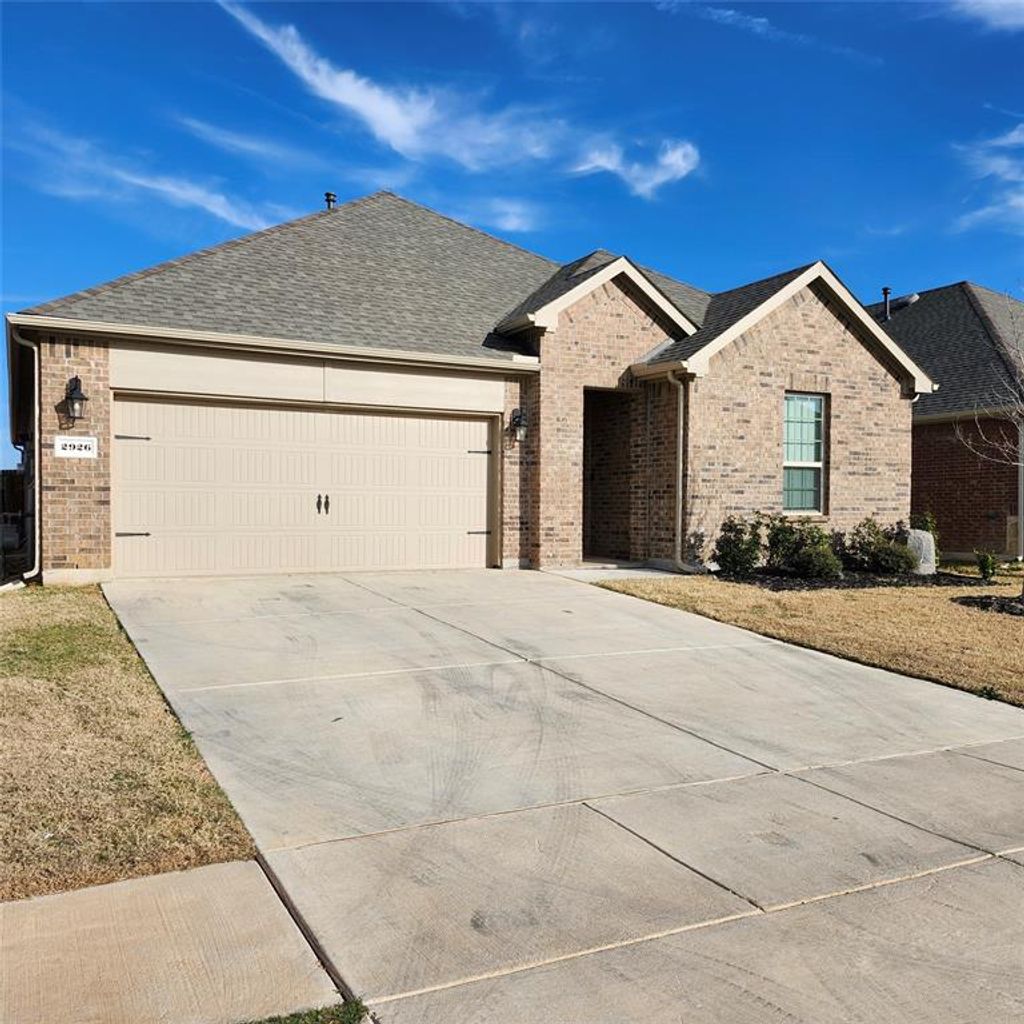Welcome to 2926 Jasper Trail, a cozy single-family home in the charming community of Silverado West. This beautifully designed brick residence offers 4 bedrooms, 3 full bathrooms, and 2,075 square feet of modern living space, perfect for families or individuals seeking comfort and style. When you step inside, you'll discover an open-concept layout featuring a spacious living area with a cozy fireplace, ideal for gatherings. The gourmet kitchen boasts sleek granite countertops, stainless steel appliances, and ample cabinetry, complemented by a large island with bar seating. Adjacent is a bright dining area seamlessly connected to the living space creating a perfect flow for entertaining. master suite is a tranquil retreat with a generous walk-in closet and an en-suite bathroom featuring dual vanities, a luxurious shower, and a soaking tub. Three additional bedrooms offer versatility for guests, children, or a home office. The additional two bathroom are equally well-appointed with modern fixtures. Outside, enjoy a well-maintained backyard with a greenhouse for gardening enthusiasts, a covered patio for outdoor relaxation, and fenced backyard with covered patio are perfect for summer outdoor activities This resort styled community has an onsite Elementary school. Community amenities include picket ball and basketball Courts, Clubhouse to host parties and family gatherings, resort style swimming pools and pavilion, dog park, playgrounds, and walking & bike trails. Don't miss this opportunity to own a move-in-ready home in Aubrey TX. "”schedule a showing today!