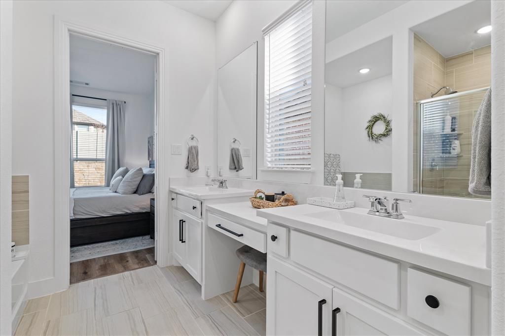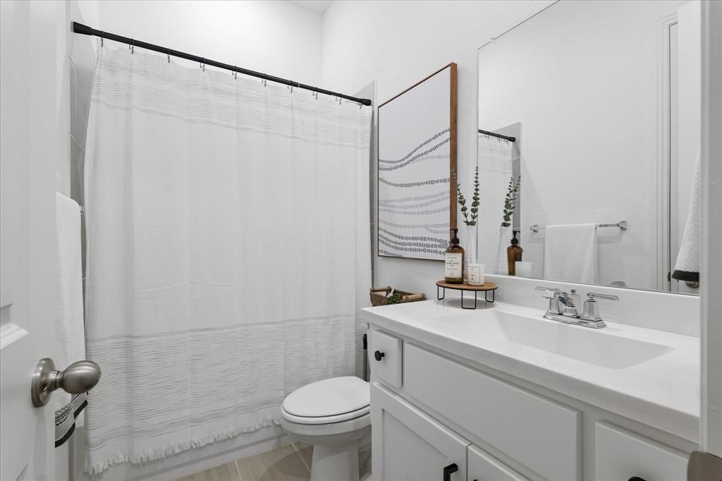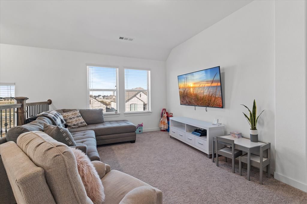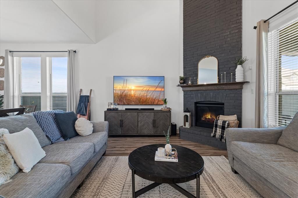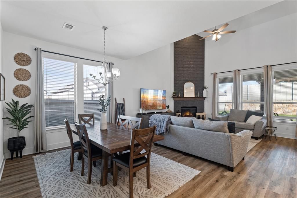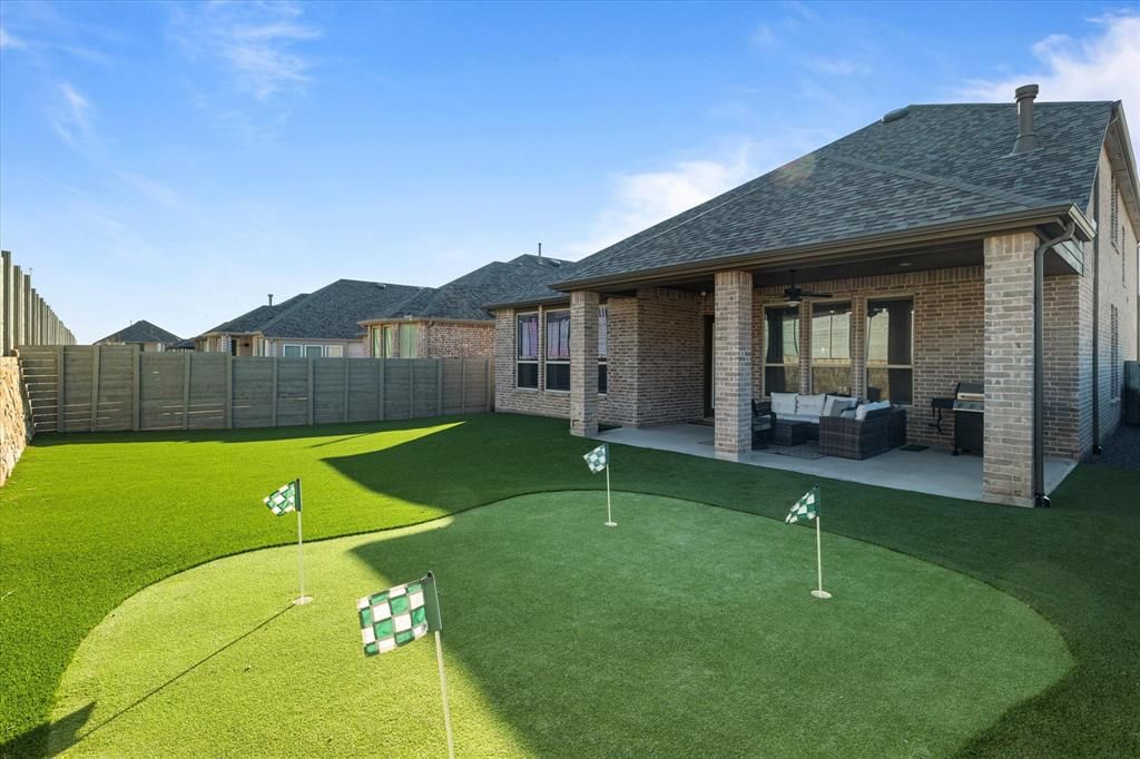 Discover elevated living in this beautifully crafted 4-bedroom, 4-bath Highland Homes residence situated on a spacious corner lot. Offering 2,765 square feet of thoughtfully designed living space, this home showcases upscale finishes, soaring ceilings, and a striking brick fireplace that anchors the inviting main living area. The gourmet kitchen is designed for both everyday living and entertaining, featuring ample counter space, modern finishes, and seamless flow into the open-concept living and dining areas. An oversized utility room adds convenience and functionality to the already exceptional floor plan. Retreat to the luxurious primary suite, complete with upgraded finishes and a spa-inspired atmosphere, while three additional bedrooms provide comfortable accommodations for family or guests. Step outside to your private backyard oasis featuring a covered patio, professional putting green, and low-maintenance turf"”perfect for relaxing or entertaining year-round. Located within the highly acclaimed Northwest ISD and the recently named Community of the Year, this exceptional property offers the perfect blend of luxury, comfort, and lifestyle. A rare opportunity to own a truly standout home in one of the area's most sought-after communities.