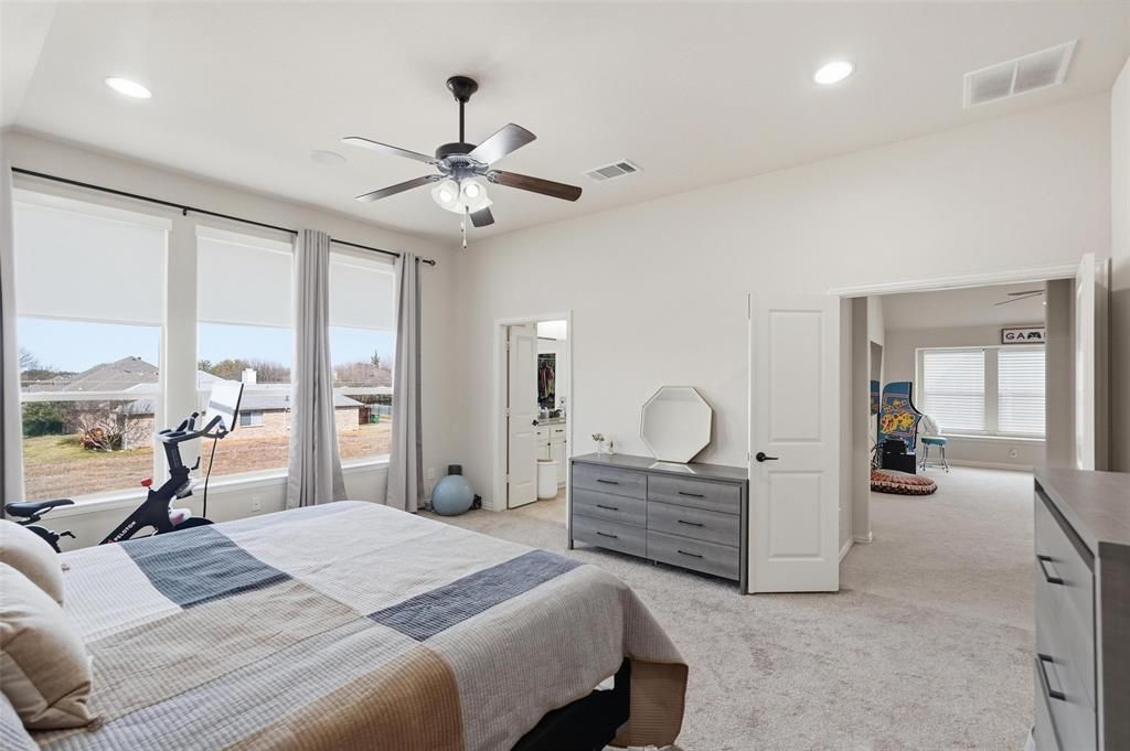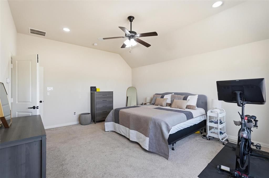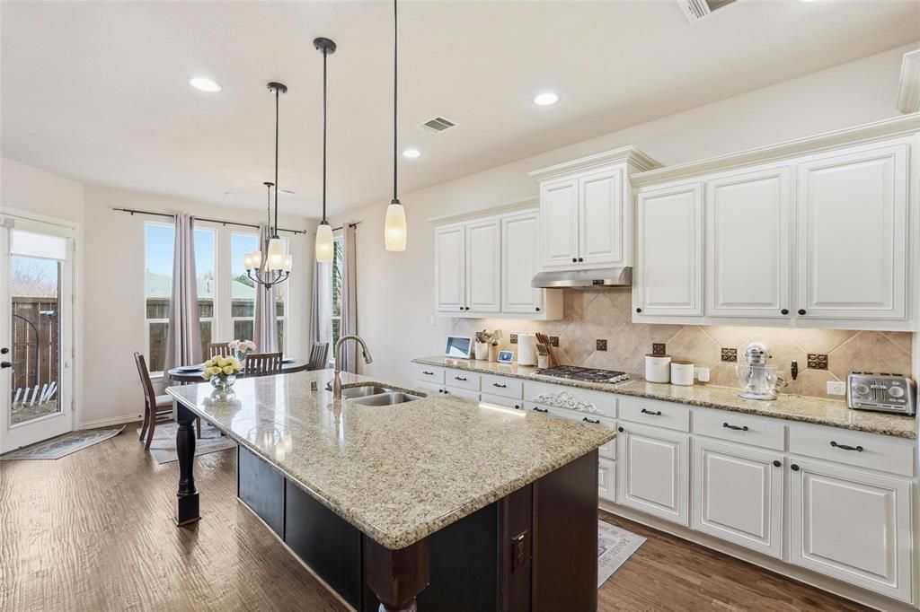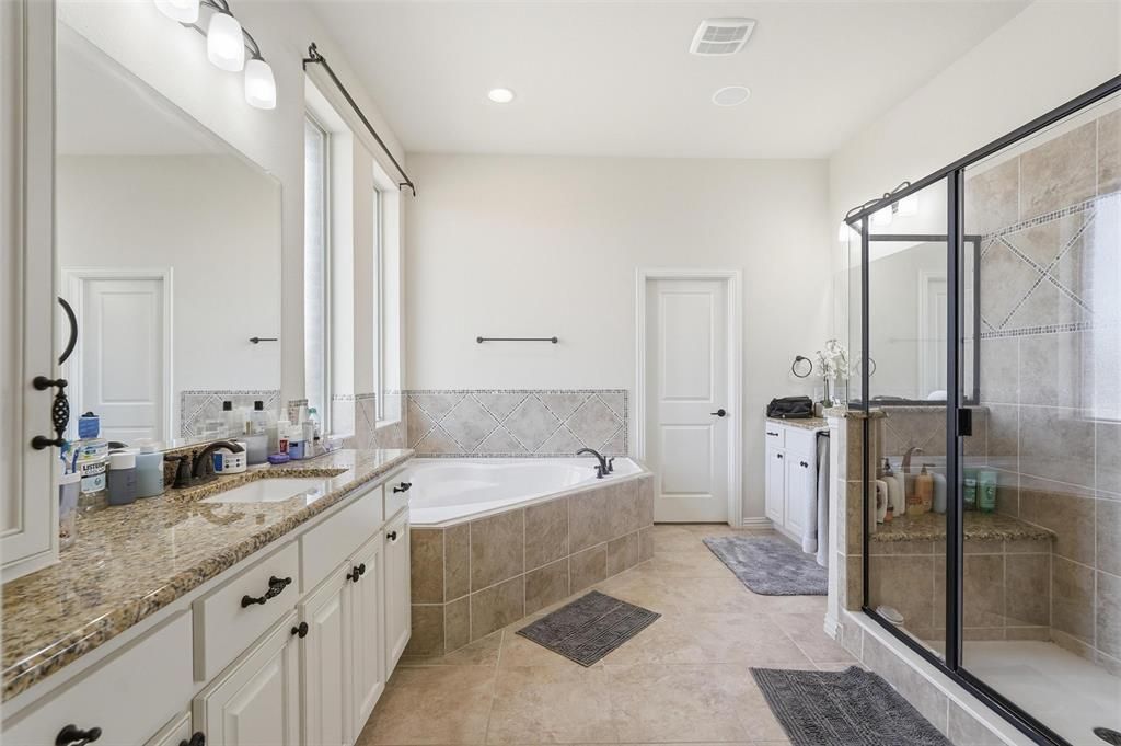 Welcome to Villas of Wellington, a small and well-kept secret tucked away in a charming neighborhood setting. Filled with natural light and designed with an open layout, this home brings the kitchen, breakfast area, and living room together in a way that feels both comfortable and functional"”perfect for everyday living or entertaining guests. The spacious kitchen features a large center island, 42-inch cabinets, a gas cooktop, walk-in pantry, and a convenient butler's pantry for extra storage and prep space. A stately dining room with French doors offers an elegant space for hosting dinners or gatherings. The main office is a true standout, featuring custom built-in bookcases and a charming library ladder that gives the space a classic, library-style feel. Beautiful hardwood floors run throughout the entire downstairs. Upstairs, the generous primary suite offers an oversized bathroom and large walk-in closet. The bath includes separate vanities, a relaxing garden tub, and a separate shower. Spacious secondary bedrooms and a large game room complete the second floor. With abundant storage and surround sound wiring throughout the home, this property offers a thoughtful blend of comfort, functionality, and unique features. Don't miss the opportunity to make this beautiful home yours!