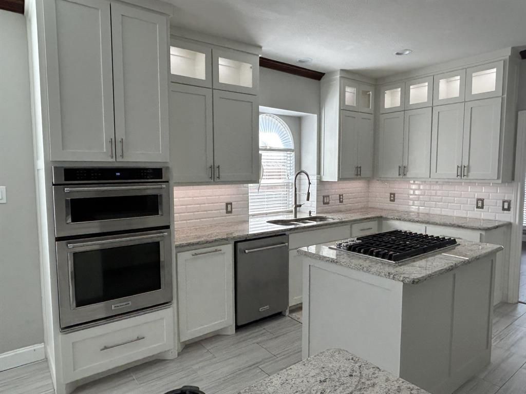 Beautifully maintained 4-bedroom home with two extra rooms ideal for an office or crafts. Features hardwood and tile throughout, an updated kitchen with soft-close cabinets, LED lighting, KitchenAid oven-microwave combo, and gas cooktop. Open living and dining area perfect for entertaining. Downstairs primary suite with large soaking tub and ample closet space. Upstairs includes a second living area, three spacious bedrooms, and remodeled bath. Outside is a BBQ lover's dream with a natural gas grill, brick pizza oven, and charcoal grill. Located in a desirable community with pool, playground, and close to shopping and dining.