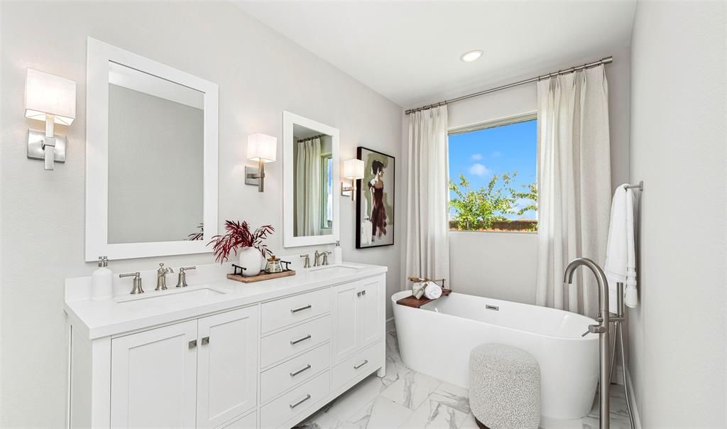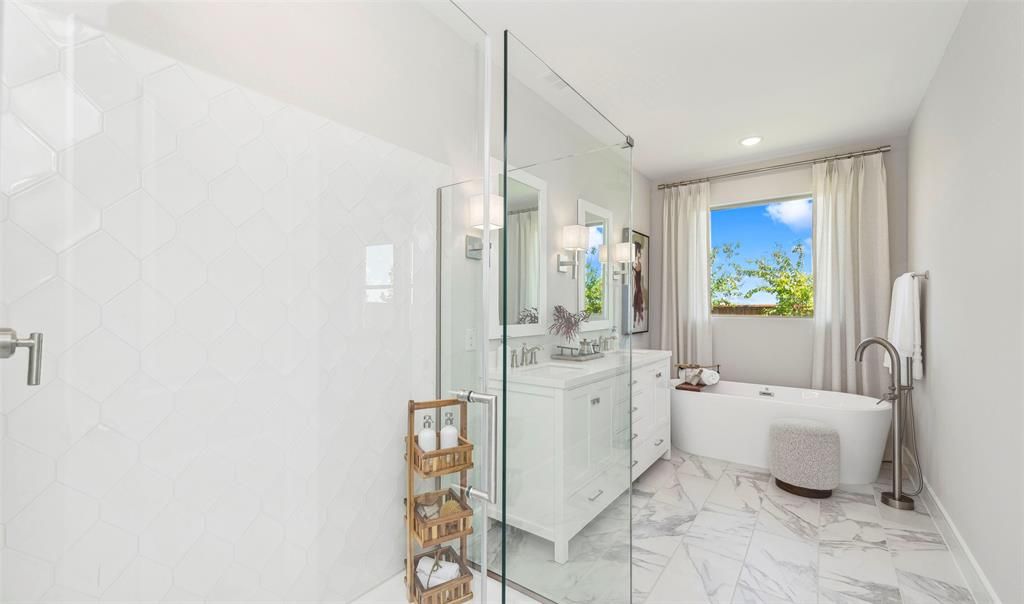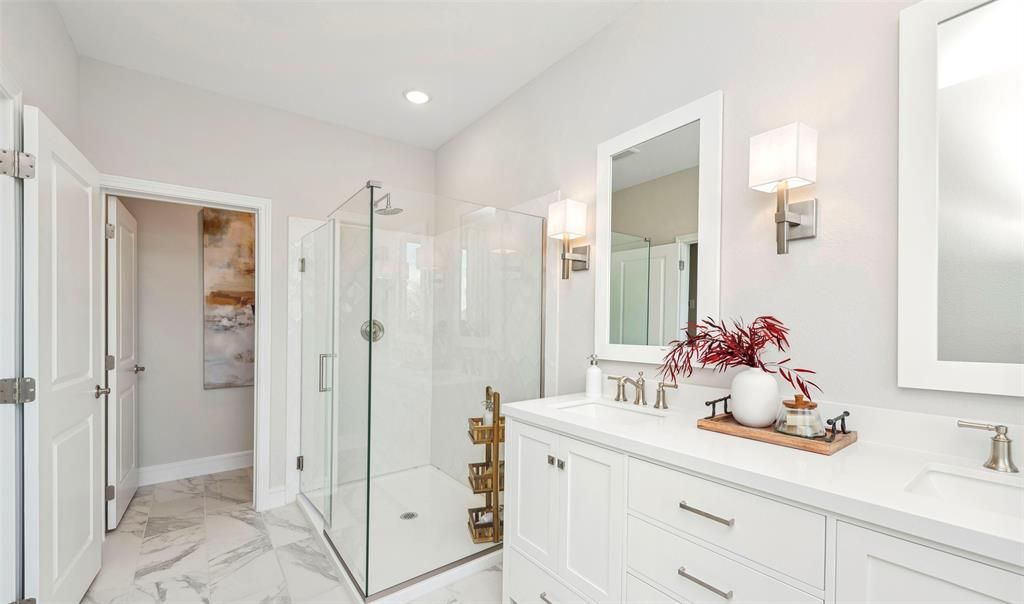 Gorgeous K Hovnanian model home in prestigious Creekshaw, updated to meet the most discerning buyer's expectations and ready for immediate occupancy! Your walk up is greeted by the beautifully landscaped front lawn featuring an elevated bricked flowerbed and covered front porch leading to the grand foyer with gleaming, easy care laminate floors and raised ceiling! On your left are two oversized bedrooms which share a hall bath, great for your growing family needs, and on your right is the secluded home office-study, perfect for the work from home professional or gamer! The huge, inviting family room features a vaulted ceiling and opens across the oversized dining area to the gourmet kitchen across a spacious breakfast bar-work island, featuring quartz c'tops, SS appliances, a gas cooktop, an abundance of cabinets and a walk in pantry to delight the family chef! The oversized, split primary suite features a spa-esque bath with dual vanities, a huge walk in closet, a glass enclosed shower and a free standing soaking tub perfect for those precious few moments of peaceful solitude. The covered back porch overlooks the backyard retreat, perfect for the kids to run and play or for Sunday afternoon BBQs!
