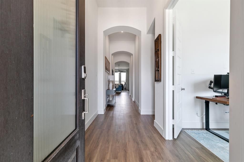 If natural light, open living spaces, and timeless design are on your wish list, 1818 Abruzzo Drive delivers beautifully. This original Highland Homes Canterbury floorplan in the sought-after Sonoma Verde community offers 4 bedrooms, 3.1 bathrooms, and a spacious 3-car garage designed for both comfort and everyday living. Step inside to an open layout featuring wood-look flooring, soaring ceilings, and large floor-to-ceiling windows that fill the home with natural light. The living room is anchored by a stunning floor-to-ceiling stone fireplace with beautiful wood detailing and mantle, creating a warm focal point for the space. Elegant arched doorways add architectural charm throughout. The kitchen is designed for both gathering and functionality with a large island that seamlessly connects the kitchen and living areas. You'll find abundant cabinetry, granite countertops, stainless steel appliances, and a decorative dark backsplash. The breakfast room sits just off the kitchen with large windows that continue to bring in plenty of natural light. A versatile flex room off the living area offers endless possibilities"”perfect for a home office, media room, playroom, craft room, or whatever suits your lifestyle. The spacious primary suite features a beautiful bay window and a relaxing ensuite bath with a garden tub, separate shower, dual vanities, and a large walk-in closet. Three secondary bedrooms offer plush carpet and walk-in closets for comfort and storage. Step outside to a covered patio and grassy backyard"”ideal for entertaining, kids, or pets. Residents of Sonoma Verde enjoy resort-style amenities including two pools, parks, playgrounds, sports courts, soccer and baseball fields, a dog park, fishing pond, and more. This home blends thoughtful design with a vibrant community lifestyle.