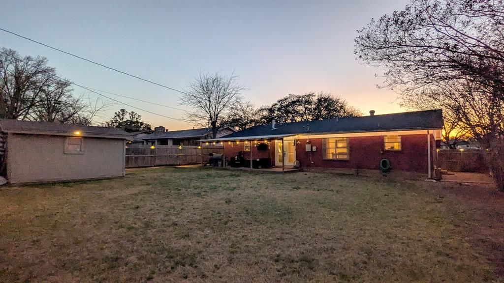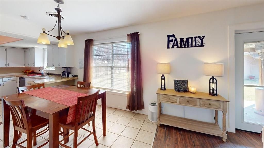Nestled beneath a beautiful, towering oak tree, this charming brick home offers 1,884 square feet of comfortable living space with 4 bedrooms and 2 full bathrooms. The inviting layout features a spacious living room that flows seamlessly from the kitchen and dining area, creating a warm and functional space for everyday living and entertaining. The living room showcases beautiful ceramic wood-look tile flooring and a recently added rock fireplace, creating a stunning focal point and a cozy place to gather. The fourth bedroom is an oversized space, offering incredible flexibility. This room could easily serve as a second living area, game room, home office, or playroom, giving you the freedom to use the space in whatever way best fits your needs. Just off the kitchen, a large mudroom and pantry area provides excellent storage and organization, making daily life even more convenient. Step outside to enjoy the privacy-fenced backyard, complete with a welcoming porch and additional storage building, perfect for relaxing evenings, outdoor gatherings, or extra storage space. Move-in ready and located in a family-friendly neighborhood, this home offers comfort, versatility, and charm all in one inviting package.