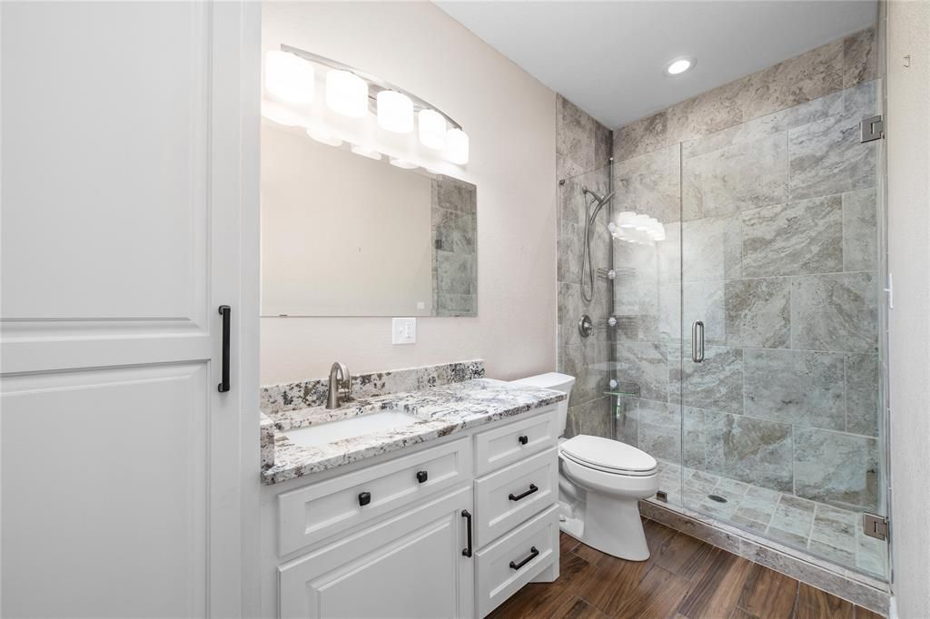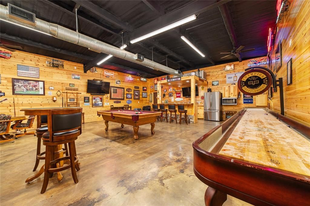 Lake life just got an upgrade. Custom built in 2022 this modern 2 bed 2 bath home is made for lake living & entertaining. Open concept design, granite throughout, oversized island, all the appliances plush washer & dryer are included. Durable hardwood-style tile flooring adds luxury and easy maintenance. Oversized garage. 16x10 storage shed. Then there is the party barn! Complete with it's own bathroom, games, custom lighting, & decor that conveys with acceptable offer. The party will never stop with the back up power Generac. Bring your friends. Bring the fun.