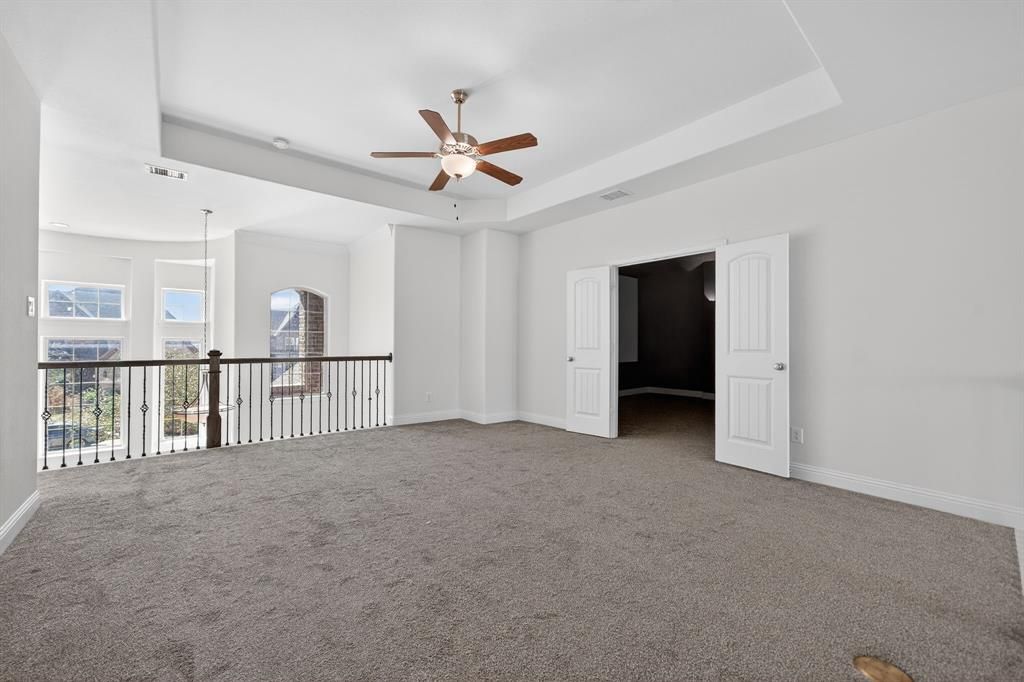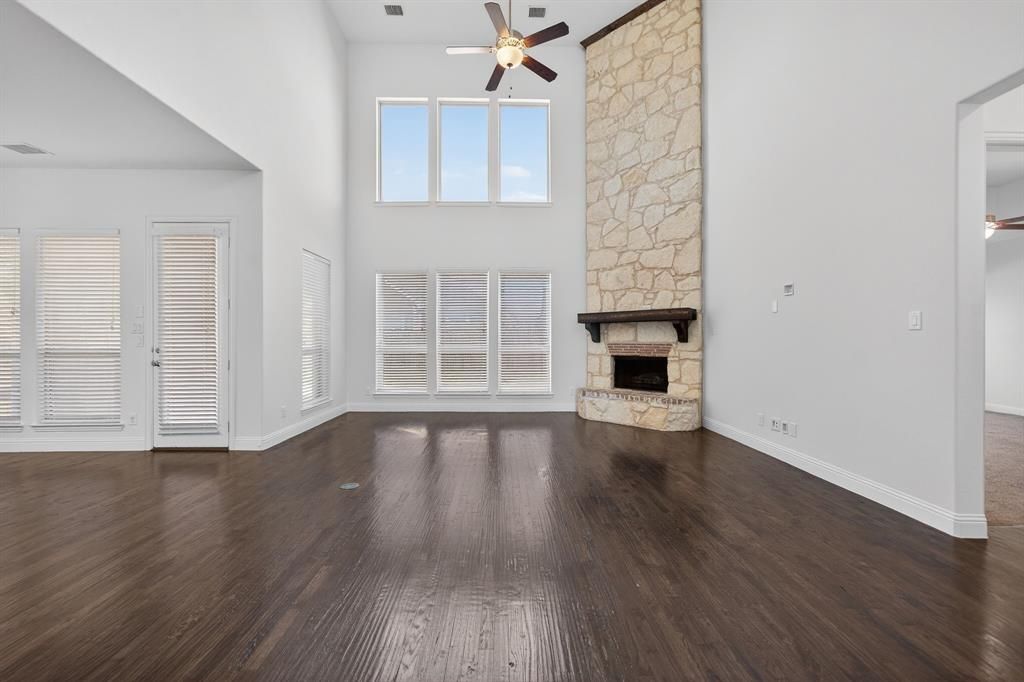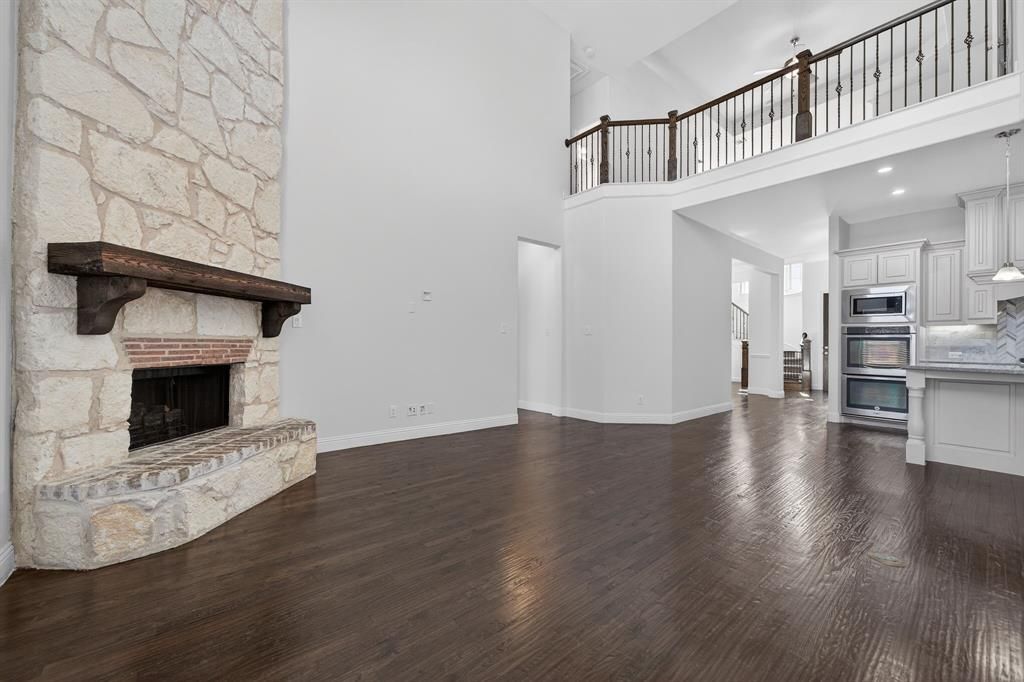 Stunning home located in the highly sought-after Breezy Hill community! From the moment you enter, you're welcomed by soaring ceilings, a grand spiral staircase, hand-scraped hardwood floors, and fresh interior paint throughout that creates a light, updated feel. The thoughtfully designed floor plan offers a private office with coffered ceilings and French doors, along with an elegant formal dining room perfect for hosting gatherings and holiday dinners. The spacious living room is the heart of the home, featuring a dramatic two-story ceiling, floor-to-ceiling stone fireplace, custom built-ins, and a wall of windows that fills the space with natural light while offering peaceful views of the backyard. The gourmet kitchen is designed for both everyday living and entertaining with stainless steel appliances, double ovens, gas cooktop, large island with farmhouse sink, butler's pantry, and a charming breakfast nook. The private primary suite is a relaxing retreat complete with a spa-inspired bath featuring an oversized walk-in shower, soaking tub, dual vanities, and a generous walk-in closet. Upstairs offers incredible flexibility with a spacious game room, dedicated media room, and three secondary bedrooms, each with its own ensuite bath. Step outside to enjoy the covered patio with an inviting outdoor stone fireplace"”perfect for relaxing evenings or entertaining guests"”overlooking the beautifully landscaped backyard.