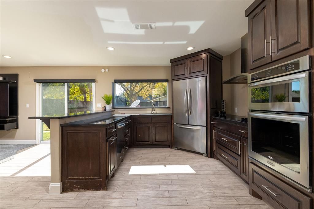Welcome to this beautifully updated 3-bedroom, 2.5 bath residence nestled in a quiet cul-de-sac neighborhood with a serene backyard and Pool!. This move-in-ready home offers style, comfort, and exceptional entertaining space. Step inside to find wood-look tile flooring, fresh paint and updated texture throughout, custom kitchen cabinetry, and modern lighting upgrades. Every detail has been thoughtfully enhanced. The front wing of the home features a cozy fireplace and a versatile flex space that can serve as a formal dining room or second living area. This area includes a dedicated half bath and a stylish wet bar complete with stunning black quartz countertops perfect for entertaining guests.On the opposite side of the home, you'll find a beautiful kitchen that overlooks the backyard and opens seamlessly into the main living area, creating an inviting and functional layout.All three bedrooms are privately situated for peace and quiet. The oversized primary suite offers plenty of space for a sitting area, and the updated en-suite bathroom adds a modern touch. Down the hall are two additional bedrooms, a full bathroom, and a conveniently located laundry area. The freshly painted exterior gives the home a modern, one-of-a-kind curb appeal. Just in time for summer, enjoy the serene backyard featuring a sparkling pool and an 8-foot cedar privacy fence ideal for entertaining family and friends. Major upgrades include updated electrical and added foam insulation in the walls for improved energy efficiency. This truly a must-see home !