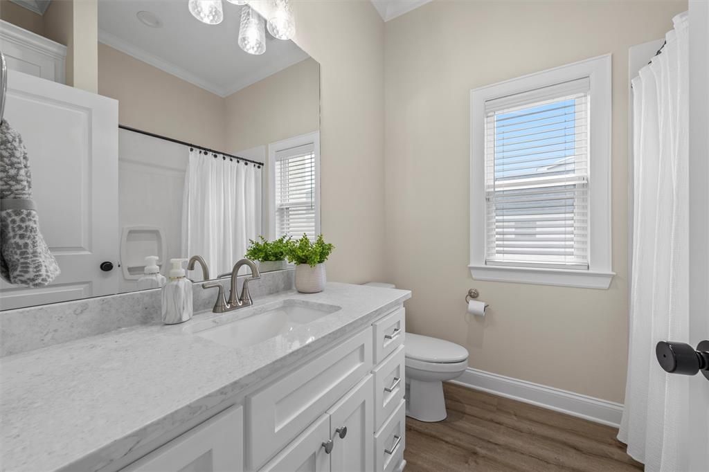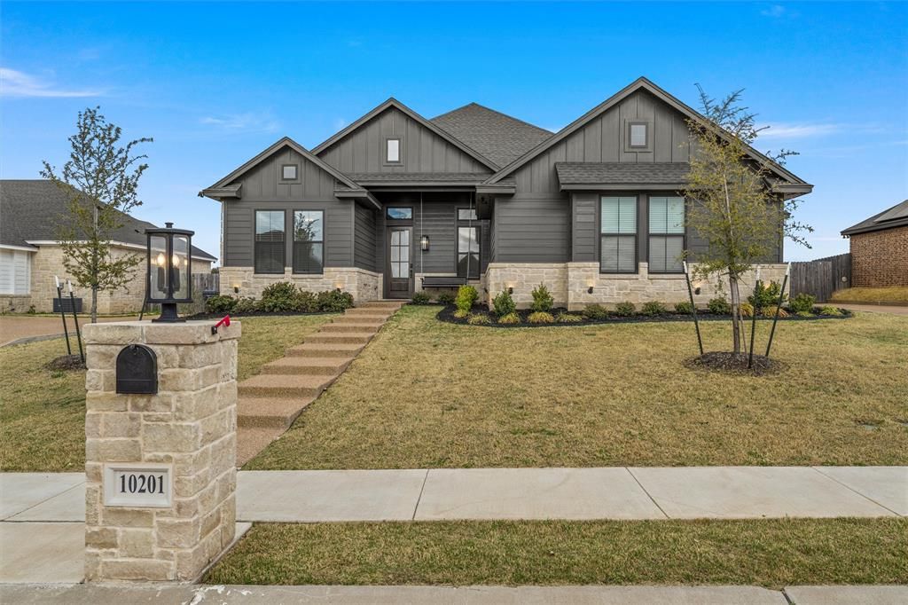 Welcome to 10201 Castleberry Ln in the desirable Creekside community with the added benefit of no HOA, a beautifully designed 5 bedroom, 3 bathroom home within the highly acclaimed Midway ISD. Situated on a .26 acre lot, this 2,539 sq ft home features 12 foot ceilings, abundant natural light, and a thoughtfully designed layout ideal for both everyday living and entertaining. This home has excellent curb appeal, featuring modern farmhouse exterior design, stone accents, and exterior lighting that creates a striking presence in the evening. Inside, the open concept living area feels bright and welcoming with elevated ceilings and large windows that bring in natural light. The kitchen serves as the heart of the home with extensive cabinetry, generous counter space, and a large island that opens seamlessly to the living room, making it perfect for gatherings. A cozy fireplace anchors the space and adds warmth and character. The primary suite is designed as a true retreat, featuring a spa inspired bathroom with a freestanding soaking tub, oversized walk in shower, and spacious walk in closet. A flexible fifth bedroom offers excellent versatility and can function as a home office, guest room, or additional living space. The home also includes a spacious mudroom with built in cabinetry, adding convenience and organization. Step outside to the covered patio overlooking a backyard that offers the perfect balance of space and low maintenance. The yard backs to open land, creating a rare sense of privacy while still providing room to relax or entertain. Creekside offers quick access to some of Waco's fastest growing areas, with shopping, dining, and major employers minutes away. HEB and Walmart are about 10 minutes away, I35 is 8 minutes away, and all three major medical centers are within 15 minutes. A thoughtfully designed home in a prime Midway ISD location offering space, style, and everyday convenience.