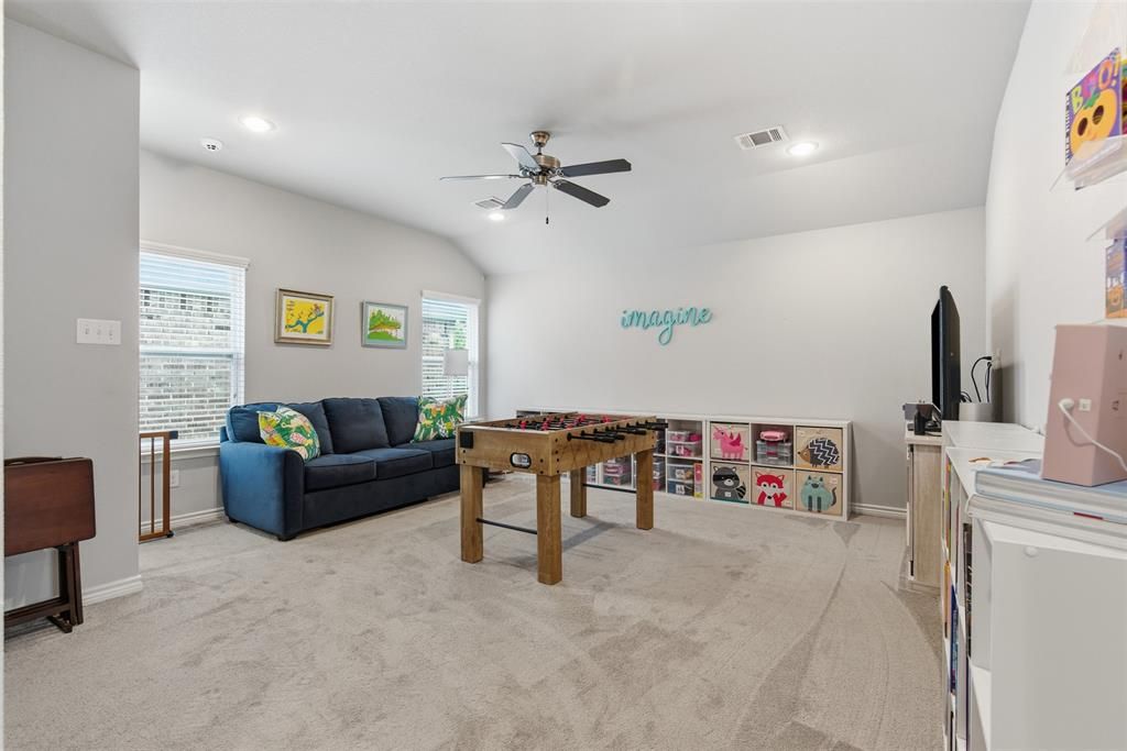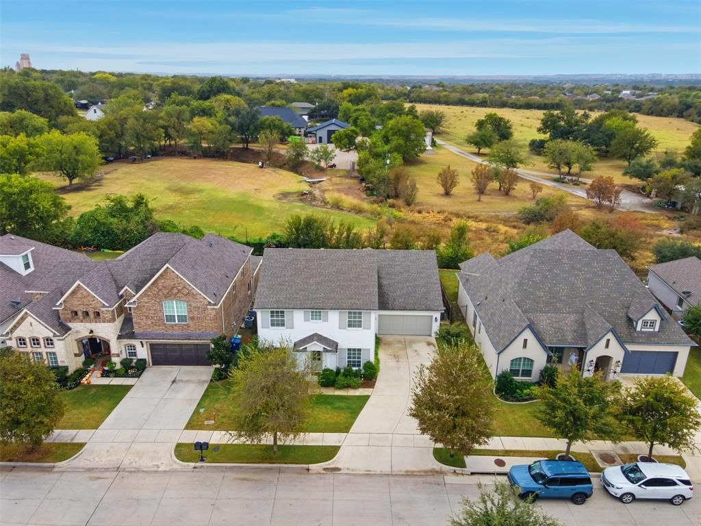 Nestled in the desirable Parks of Aledo community, this stunning 4 bedroom, 3.5-bath traditional-style home offers a perfect blend of comfort, elegance, and functionality. The gourmet kitchen is a chef's delight, complete with granite countertops double oven, ample cabinetry, and a seamless flow into the dining and living spaces. The primary bedroom suite is conveniently located downstairs, offering privacy and comfort. With double vanities, tub, and walk in closet. Upstairs, you'll find a versatile play area or game room along with 3 additional bedrooms and 2 baths, with plenty of space for guests. Step outside to enjoy the low maintenance turfed backyard that backs up to lush green space, creating a serene setting for outdoor living. This home combines thoughtful design, modern finishes, and a peaceful setting"”truly a must-see in The Parks of Aledo